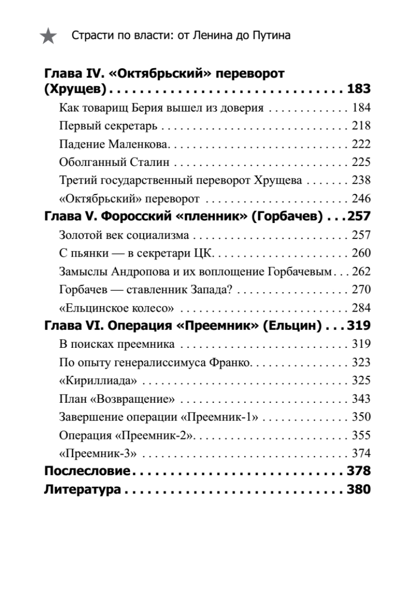 Велика страна наша, а порядка в ней не было и нет. И это отсутствие порядка проявлялось на протяжении почти всей российской истории в постоянной борьбе за власть. Книга, которую вы держите в руках, посвящена смене власти в России в XX столетии – от Владимира Ленина до Владимира Путина. Казалось бы, эпоха дворцовых переворотов в России закончилась в начале XIX века, когда был убит император Павел I. Однако если присмотреться к дальнейшим историческим событиям, окажется, что дворцовые перевороты осуществлялись и в веке двадцатом. Есть такое выражение - «свита играет короля». У нас в стране свита играла против короля! На протяжении всего ХХ века перевороты, приводившие к смене власти и изменению политического курса страны, зрели и осуществлялись не где-то на стороне, а в самом ближайшем окружении главы государства. Это и борьба между Лениным и Свердловым, и приход к власти Сталина с последующим разгромом оппозиции в лице Троцкого, Зиновьева и Каменева. Это и загадочная смерть Сталина, это и воцарение Маленкова, павшего в результате интриг Никиты Хрущева, и смещение последнего с поста главы правительства. Это и замена «кремлевских старцев» на молодого, энергичного, ведущего явно прозападную политику Михаила Горбачева. Это и драматический спектакль с ГКЧП и передачей власти Ельцину, и противостояние его с Горбачевым, повлекшее за собой распад великой державы, и беспрецедентная в мировой практике операция «Преемник». ХХ век закончился. Закончилась ли эпоха придворных переворотов в России? Или и в ХХI столетии судьбу нашей страны будет определять узкая группа людей, приближенная к власти?