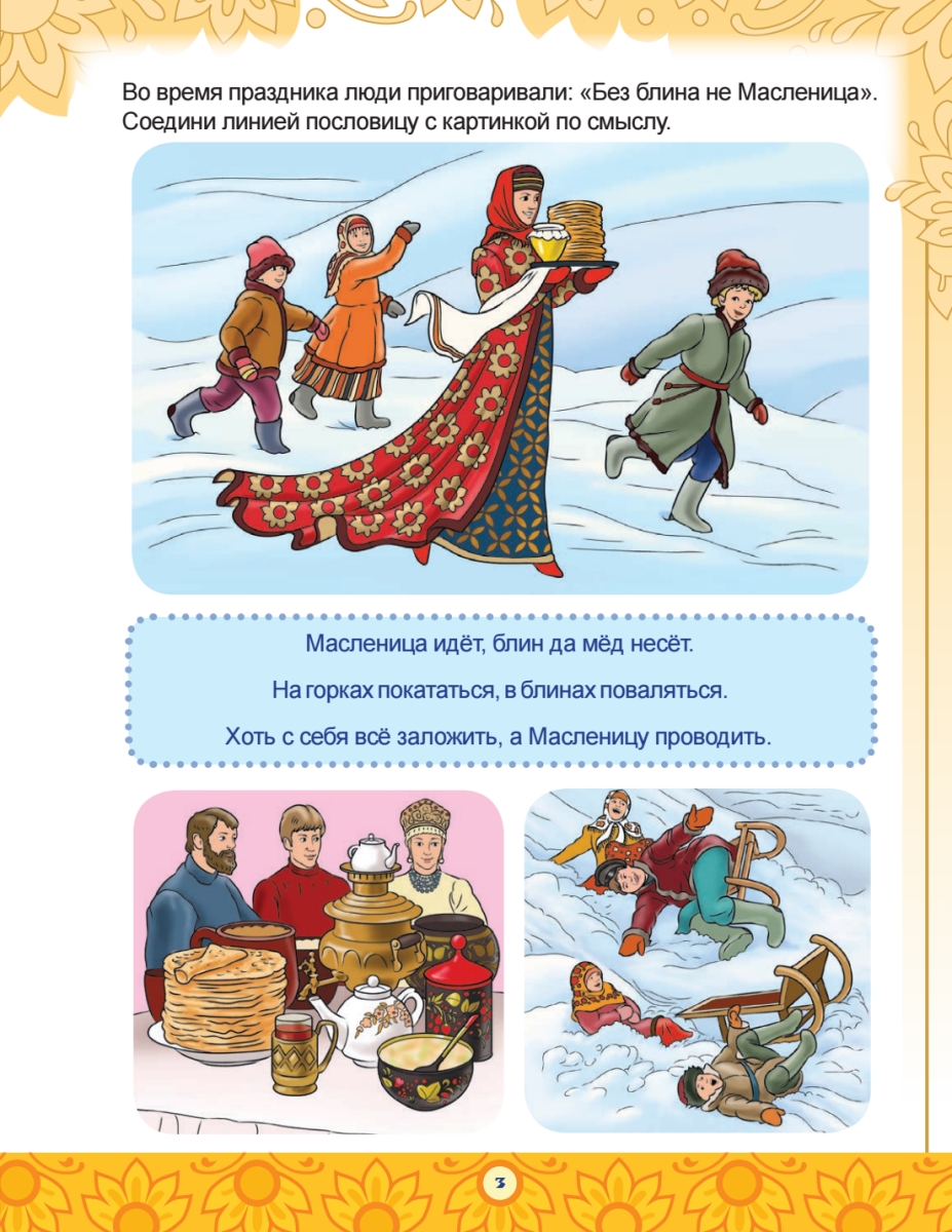 занимательная книжечка в мягкой обложке с наклейками. Мы очень любим наклейки, а тут сразу и что-то выучить можно, немного текста, интересные разные задания (это мы тоже очень любим!)...хорошо что есть такие книги которые рассказывают о наших русских традициях!
