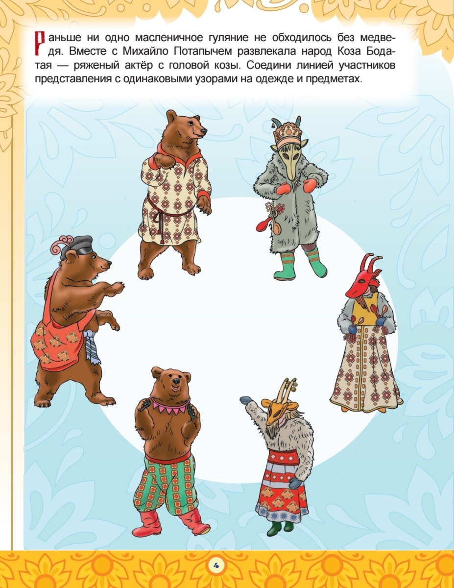 Книга с головоломками, лабиринтами, увлекательными заданиями о том, как веселились на Руси: к каким праздникам готовились, какие обычаи соблюдали, чем угощали соседей и в какие приметы верили. О том, почему в ожидании весны сжигали Масленицу, куда ходили девицы в ночь Ивана Купалы, как на Рождество Христово кликали мороз на угощение. Познавательная книга с наклейками для развития мелкой моторики, логики, мышления и памяти ребёнка.