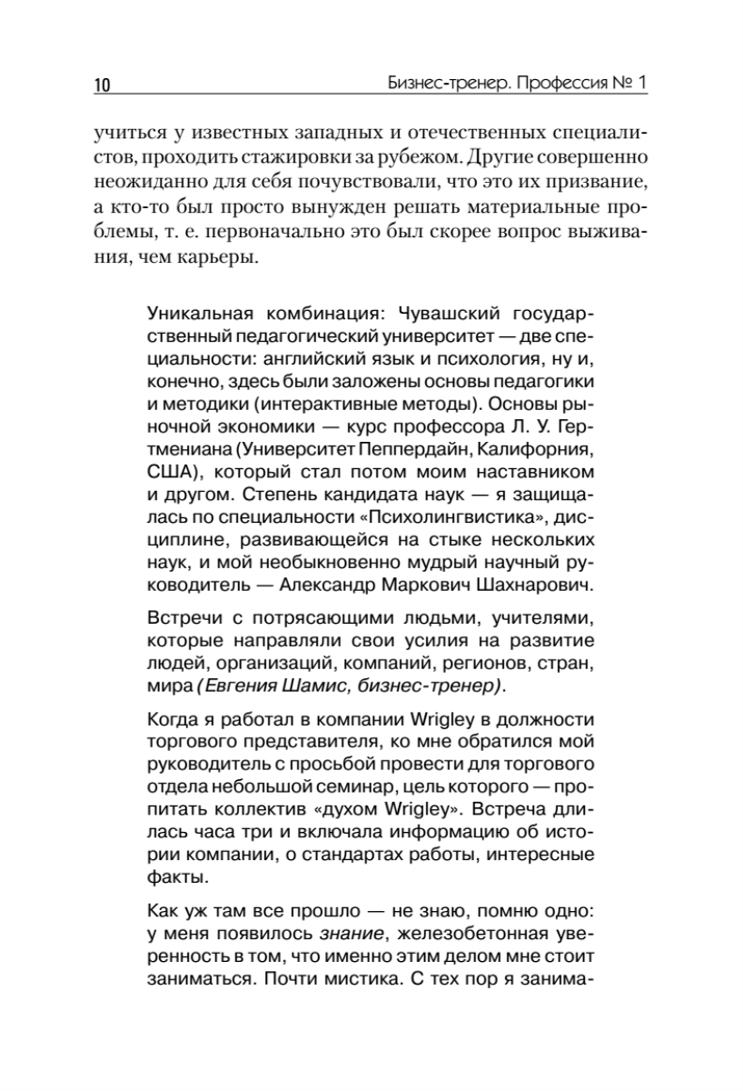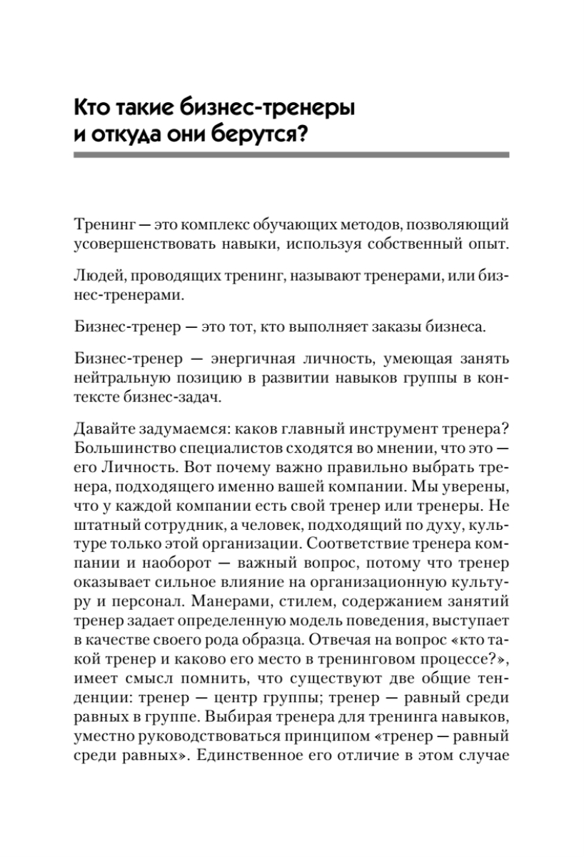 В наше время бизнес-тренер — это действительно профессия № 1, перед вами замечательное практическое пособие по ее приобретению. Что нужно, чтобы стать преуспевающим бизнес-тренером? Как и где можно научиться вести бизнес-тренинги? Как найти первых и последующих клиентов? Как продвигать и продавать свои услуги? Как способствовать росту гонораров? На эти и многие другие животрепещущие вопросы ответят Алексей Сергеев и его соавторы, опытные и преуспевающие бизнес-тренеры агентства «Мастер-класс», среди клиентов которого Газпромбанк, Дженерал Моторс, Форд Мотор Компани, Тойота, Ниссан, Норильский Никель, Билайн, Мегафон, Ростелеком, Коркунов, Аэрофлот, Лента, Пятерочка, Росгосстрах, Радио-Хит и так далее.