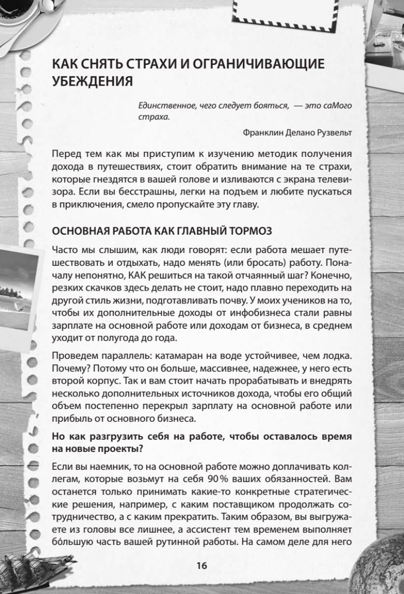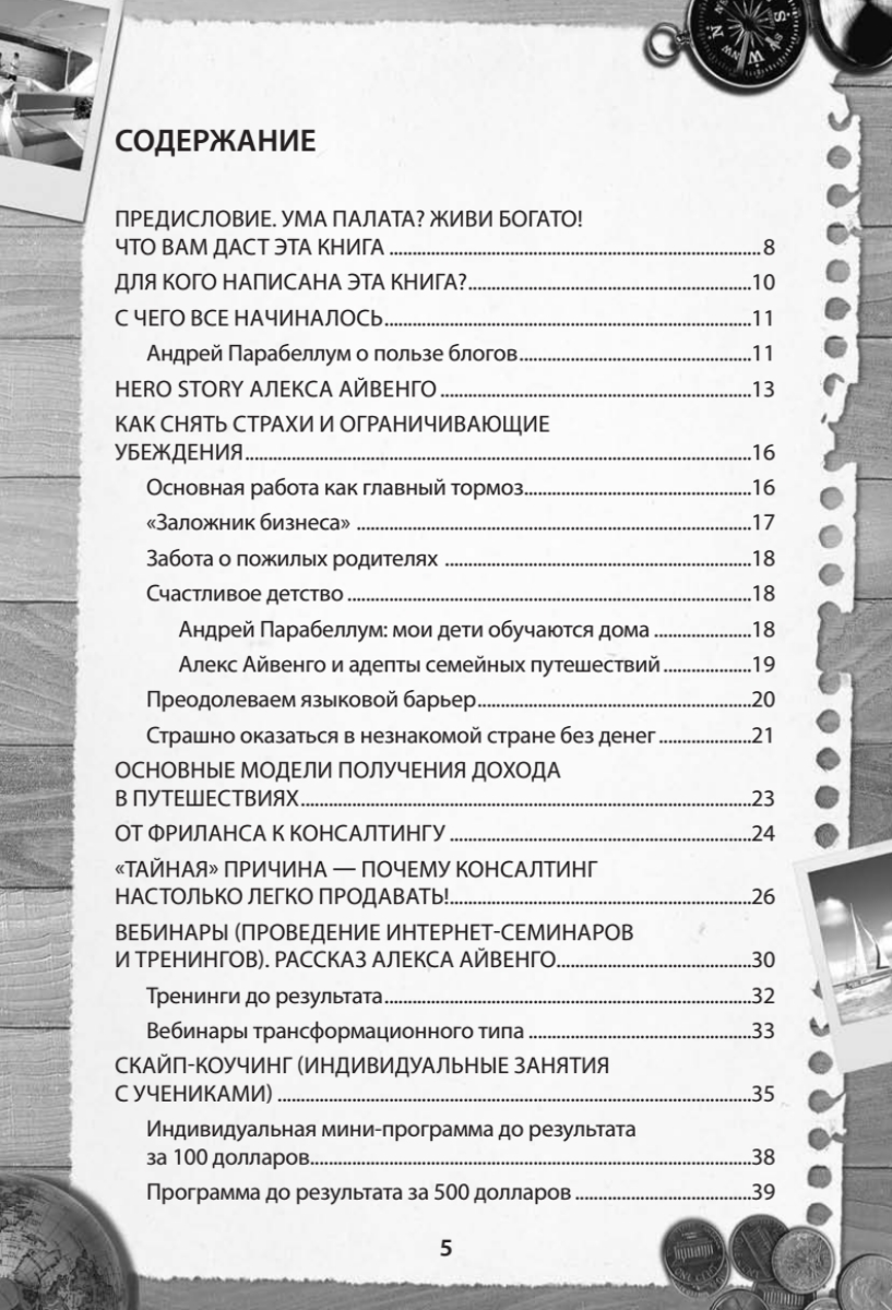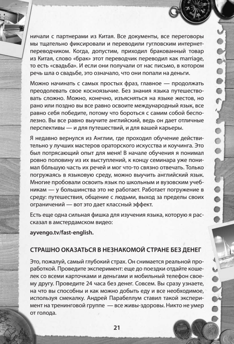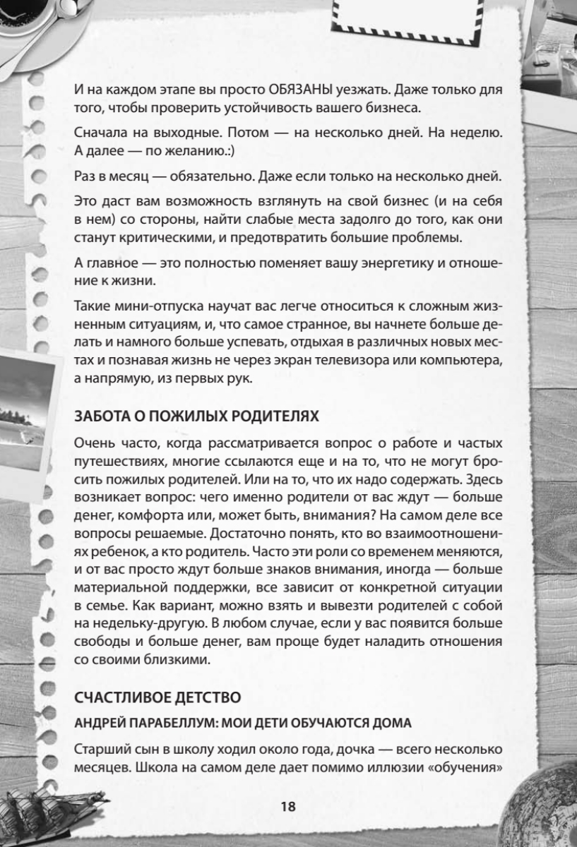 Это книга-путеводитель в мир тревеливинга — мир путешествий, свободы, сотрудничества и процветания. Здесь нет начальников и подчиненных. Вы сами выбираете, с кем работать, а с кем нет. И конечно, вы можете зарабатывать быстрые деньги — доказано результатами наших учеников.Звучит как мечта? Проснитесь! Мир изменился, так живут уже тысячи людей!В этой книге:• как избавиться от ограничений, мешающих вашей новой жизни;• 5 источников дохода в путешествиях;• распорядок дня в путешествиях, который дает максимальную свободу без ущерба делу;• алгоритм, как в точности был заработан наш первый миллион в Интернете за 3 дня;• первые шаги с абсолютного нуля до первых денег.Самое главное — вы экономите как минимум 30 000 рублей: именно столько платили участники за наши тренинги, а вы получите упражнения бесплатно на страницах этой книги!Пробуйте новые знания, зарабатывайте, путешествуйте и делитесь с миром своими успехами!«Эта книга родилась как итог наших успешных экспериментов. Мы — Андрей Парабеллум и Алекс Айвенго — убеждены, что каждый, кто готов ставить высокие планки и идти за своей мечтой, сможет жить и зарабатывать в путешествиях, наслаждаясь каждым днем. Много ли для этого нужно? Для начала — выключить зомбоящик и оторвать свой зад от дивана. Еще не помешает пройти тренинг у хорошего коуча. Но даже если вы просто прочитаете нашу книгу, революцию в сознании гарантируем. Вам станет ясно, откуда берется денежный поток в Интернете и как извлечь максимальную пользу из собственного серого вещества, то есть мозга».Алекс Айвенго — предприниматель и путешественник. За два года посетил почти 40 стран, его ученики заработали более 24 390 040 рублей. Частый гость СМИ: ELLE, «Комсомольская правда», Молодежный канал, радио Маяк, VIM-AVIA, ТВЦ. Создатель реалити-шоу «На Свободу».Андрей Парабеллум — гражданин России и Канады, бизнес-тренер и консультант, автор продвинутых методик организации, маркетинга и продажи услуг, товаров и информационных продуктов. Убежденный сторонник практических навыков и противник теоретических знаний.