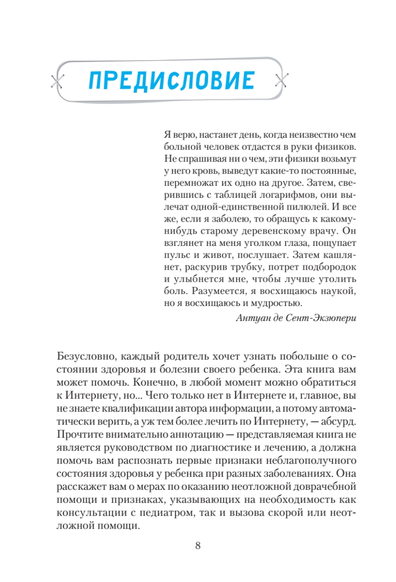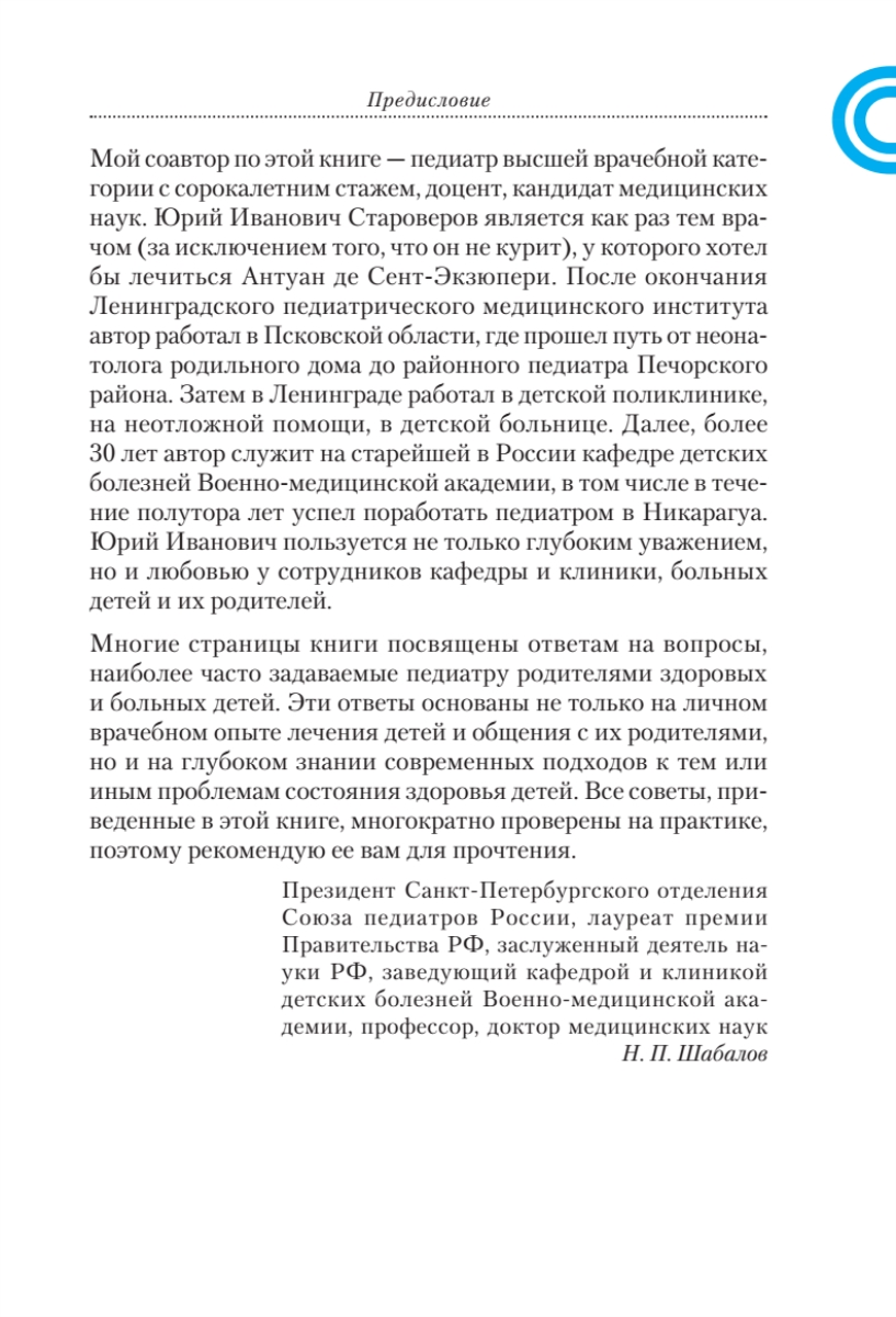 Самое важное при уходе как за здоровым, так и за больным ребенком. Книга-итог, итог 40-летнего опыта общения авторов с детьми, их родителями (и, самое сложное, их бабушками и дедушками) на разных этапах медицинского наблюдения: в родильном доме, поликлинике, на вызовах «неотложки» и в клинике детских болезней. Книга-помощник, помощник всех родителей, она объяснит вам, почему заболел ребенок, подскажет, как ему помочь и научит что нужно сделать для того, чтобы он не болел. Те, кто привык вникать в суть вещей, найдут простое и доходчивое объяснение развития симптомов заболеваний у детей. Те, кому нужны практические советы, найдут все необходимые рекомендации по оказанию ребенку грамотной помощи. Все написано очень простым, и еще более понятным, языком, но поскольку избежать использования медицинской лексики невозможно, в конце книги есть словарик терминов и азбука наиболее часто используемых лекарств.