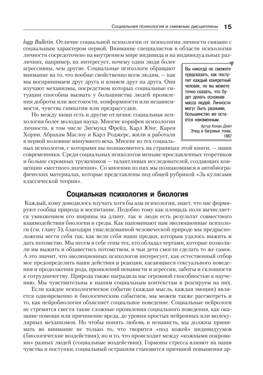 В седьмом издании «Социальной психологии» обобщаются результаты самых последних исследований различных социальных явлений. Представлены теории и данные, которые, с одной стороны, вполне доступны рядовому студенту, а с другой — не освещаются в иных курсах по социологии или психологии. В этом издании, так же как и в предыдущем, большое внимание уделено различным культурам, фундаментальным принципам социального мышления, социального влияния и социального поведения. Автор иллюстрирует эти принципы транснациональными примерами. Живой язык автора, обзор социально-психологических и общепсихологических теорий, описание разнообразных экспериментов, несомненно, привлекут внимание не только студентов-психологов и их преподавателей, но и социологов, философов, политологов.