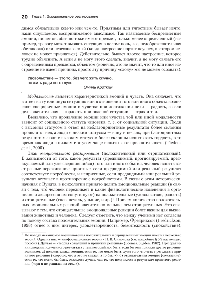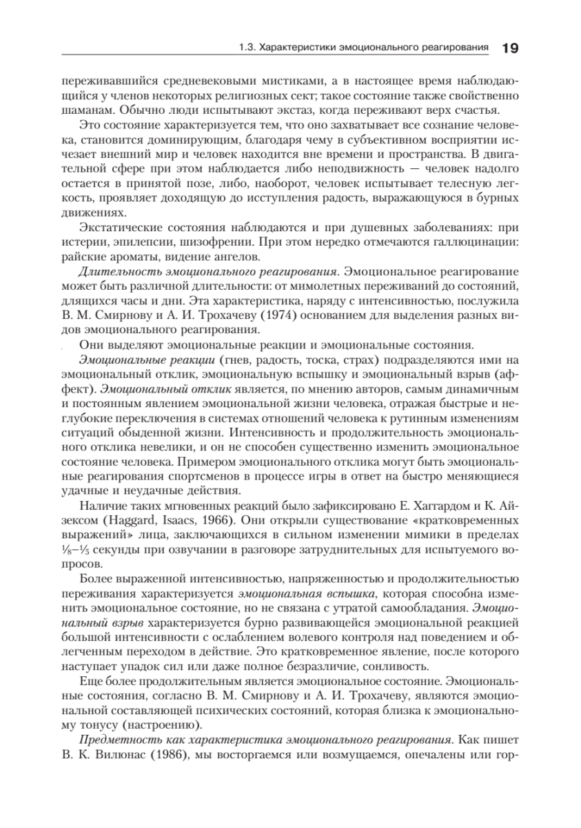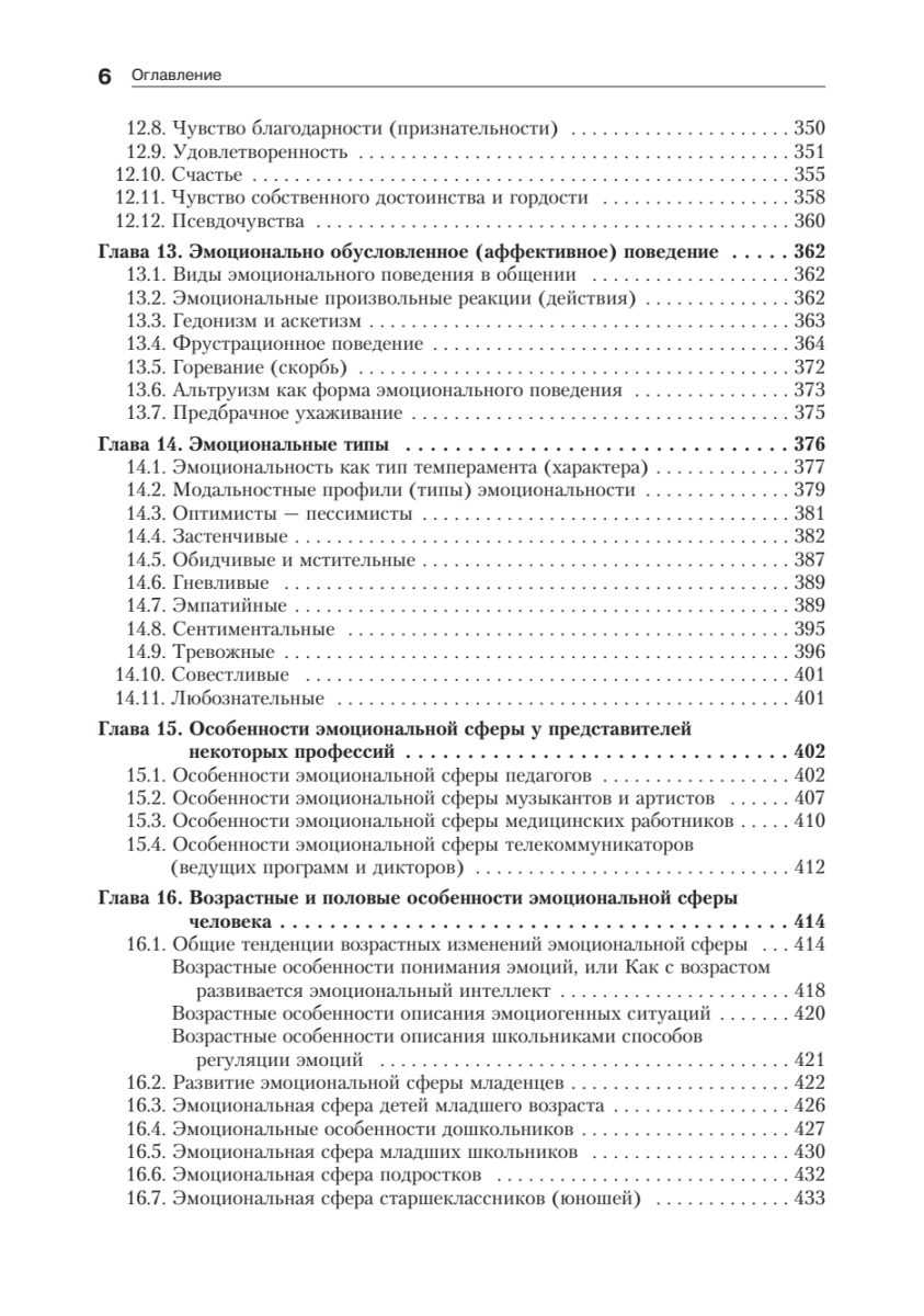 Второе издание учебного пособия (предыдущее вышло в 2001 г.) переработано и дополнено. В книге изложены теоретические и методологические вопросы изучения эмоций и чувств человека. Основное внимание уделено анализу структуры эмоциональной сферы и ее составляющих: эмоционального тона, эмоций, эмоциональных свойств личности, чувств, эмоциональных типов. Рассмотрены теории возникновения эмоций, их функции и роль в жизни человека, изменения эмоциональной сферы в онтогенезе и при патологии. В пособии приведены многочисленные методики изучения различных компонентов эмоциональной сферы человека, которые могут с успехом использоваться как в научных, так и практических целях. Научное содержание почти всех глав второго издания расширено с учетом отечественных и зарубежных исследований, опубликованных за последние 15 лет.Учебное пособие предназначено для психологов, психофизиологов, педагогов, а также для студентов и аспирантов психологических и педагогических факультетов и вузов.