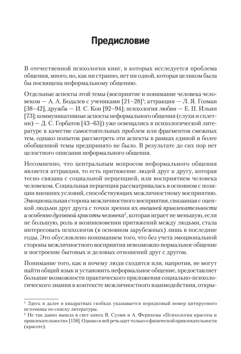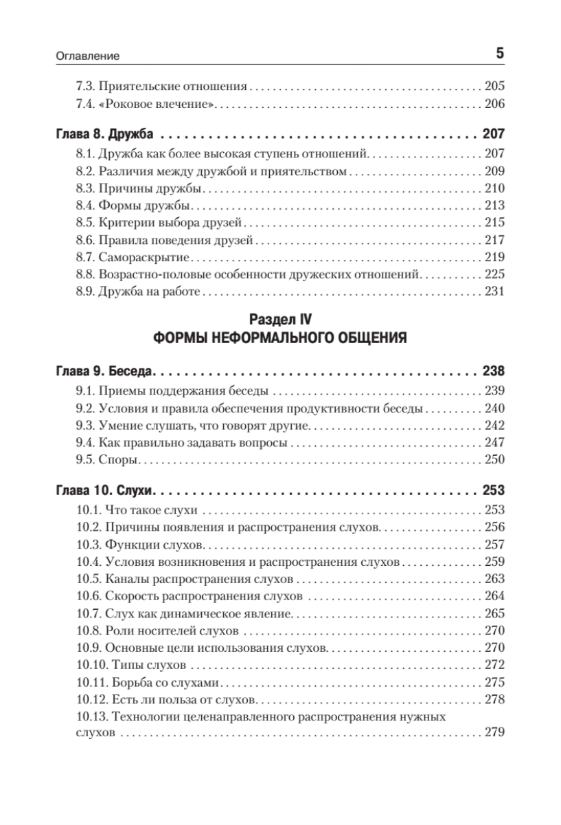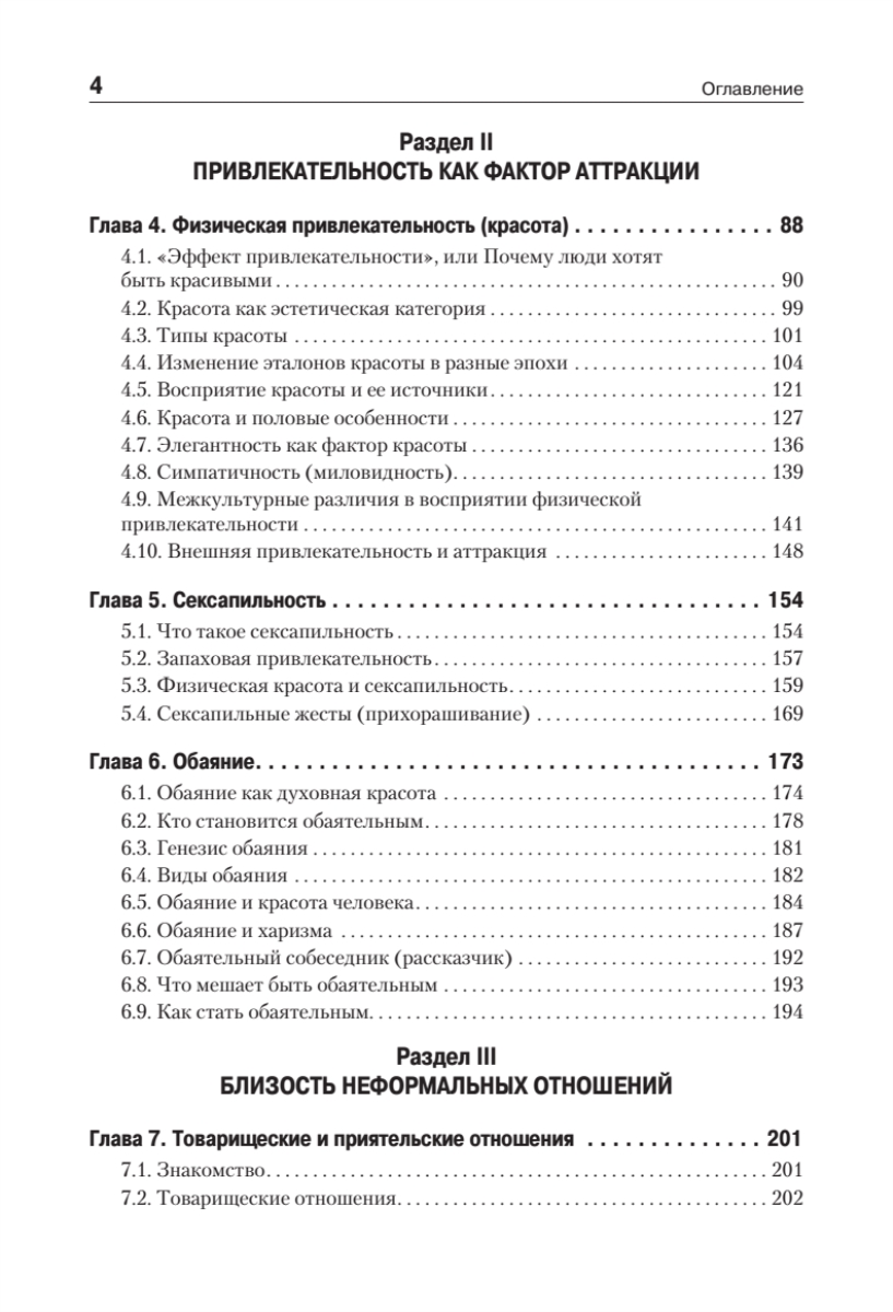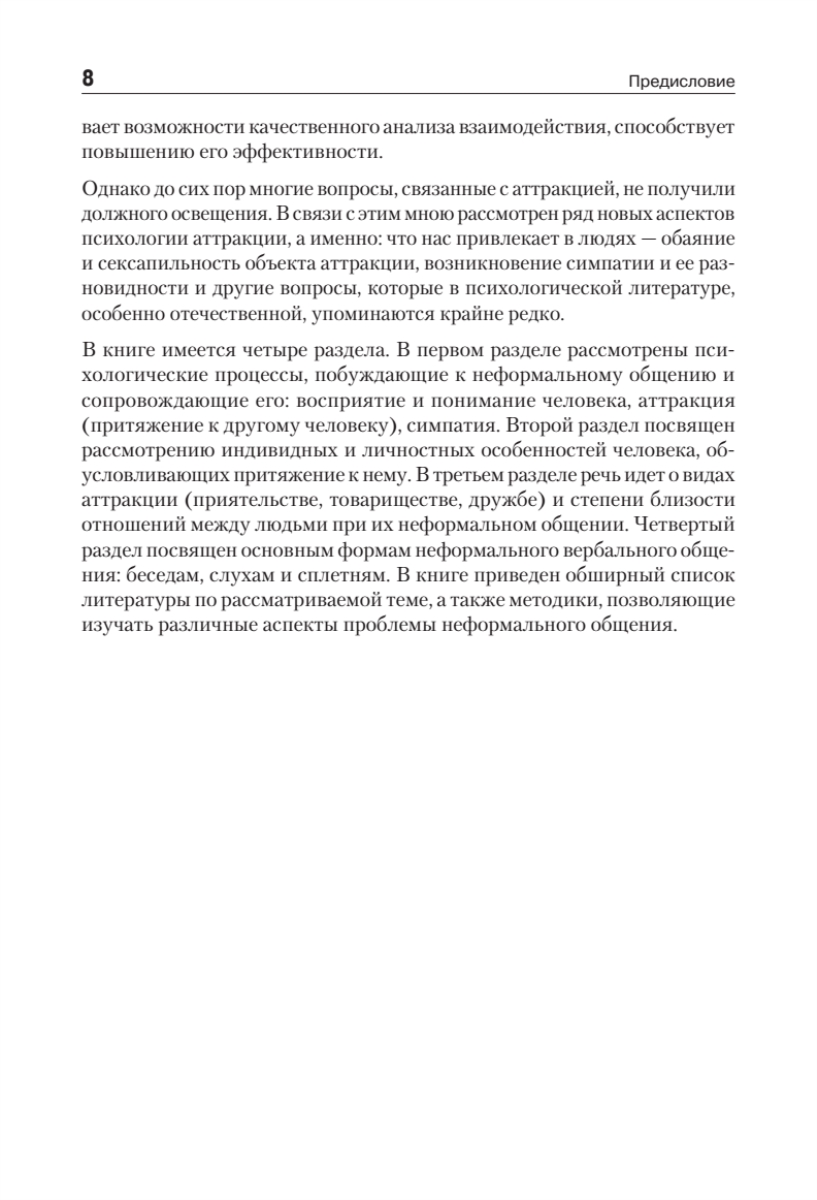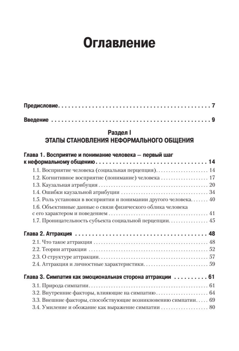Для читателя представляет несомненный интерес описание общения с учетом его разнообразных форм: прямое и косвенное, непосредственное и опосредствованное, массовое и межличностное. Также в социальной психологии выделяют три различных по своей ориентации типа межличностного общения: императив, манипуляцию и диалог. Автор глубоко раскрывает область исследований, связанных с выявлением механизмов образования различных эмоциональных отношений к воспринимаемому человеку, а именно понимание феноменологии аттракции, симпатии, эмпатии, обаяния, дружбы и пр.
