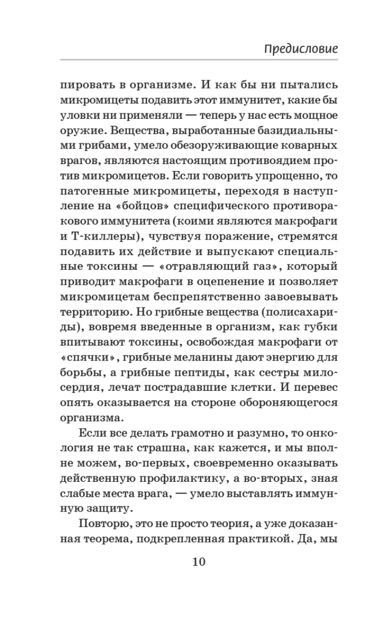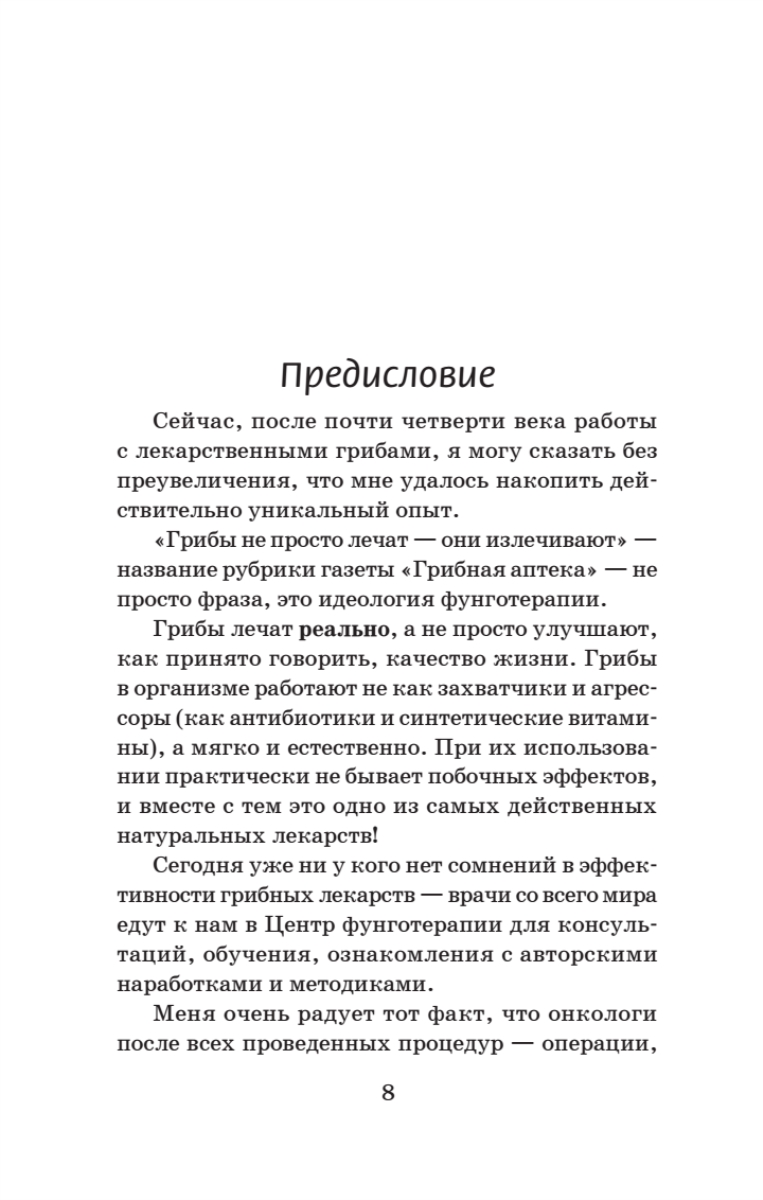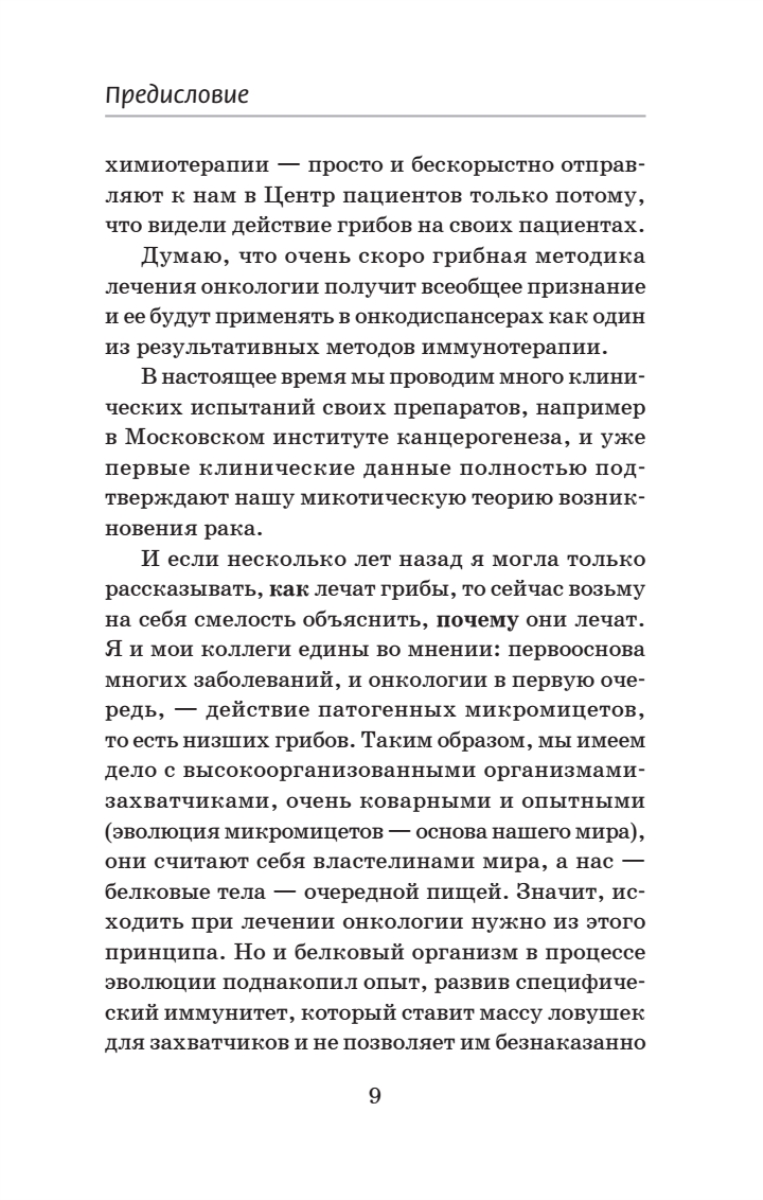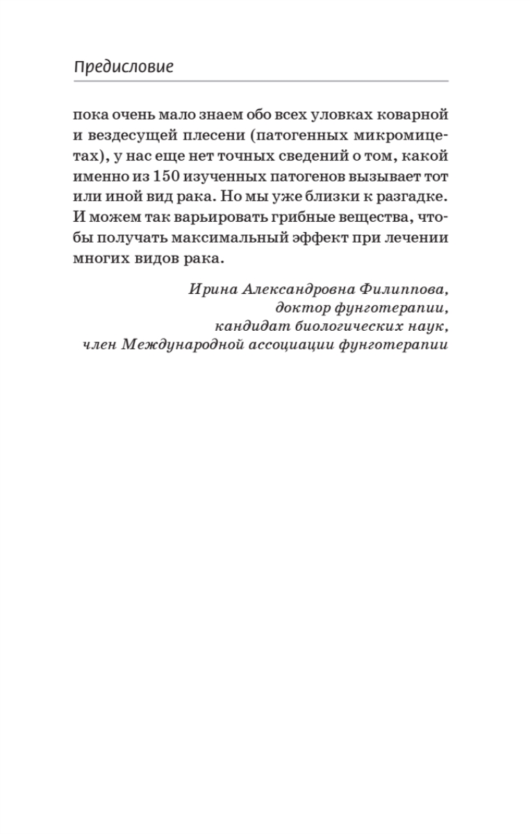 Книга посвящена уникальному и натуральному природному средству борьбы с раком —лекарственным грибами. В результате научных исследований был официально признан серьезный противоопухолевый эффект при применении грибов. На основе научных данных в книге дается объяснение противоопухолевых свойств грибов, а также переосмыслена общепризнанная трактовка причин возникновения рака. Автор уверена, что онкологические заболевания вызываются патогенными грибами-микромицетами, и приводит свою "микотическую теорию", которая многое объясняет и служит лучшим доказательством того, почему грибы помогают при онкологических заболеваниях. Книга дает множество примеров самых невероятных случаев исцеления рака. В чем же сила грибов? Почему они побеждают смертельный недуг? Как использовать лекарство нового тысячелетия? Где достать грибные препараты и рецепты? Ответы на эти и другие вопросы вы найдете в книге.
