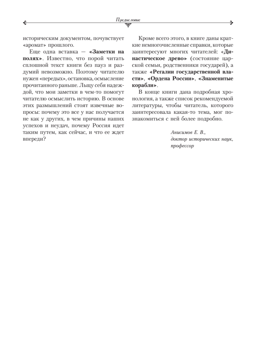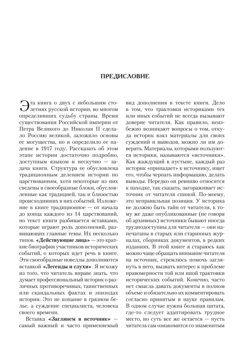 Книга, написанная известным историком и писателем Евгением Викторовичем Анисимовым, содержит полную и всестороннюю информацию по истории императорской России — от Петра Великого до Николая II. Перед вами предстанут два столетия русской истории, во многом определившие дальнейшую судьбу страны. Это была эпоха, когда закладывались основы могущества России, эпоха становления великой державы. Но это же время обусловило и ее падение в 1917 году.В текст книги, выдержанной в традиционной хронологической манере изложения, включены увлекательные вставки: «Действующие лица», «Легенды и слухи», «Заглянем в источник», «Заметки на полях». Заинтересуют многих читателей и краткие справки: «Династическое древо», «Регалии государственной власти», «Ордена», «Знаменитые корабли».Прекрасный стиль автора и богатство представленного в книге исторического материала не дадут вам скучать!