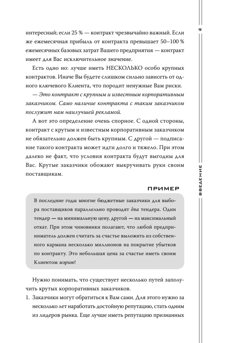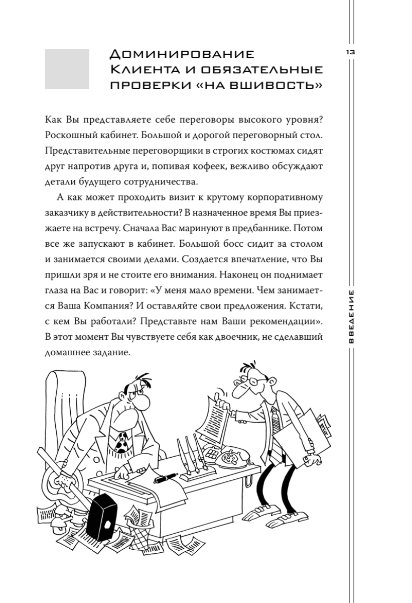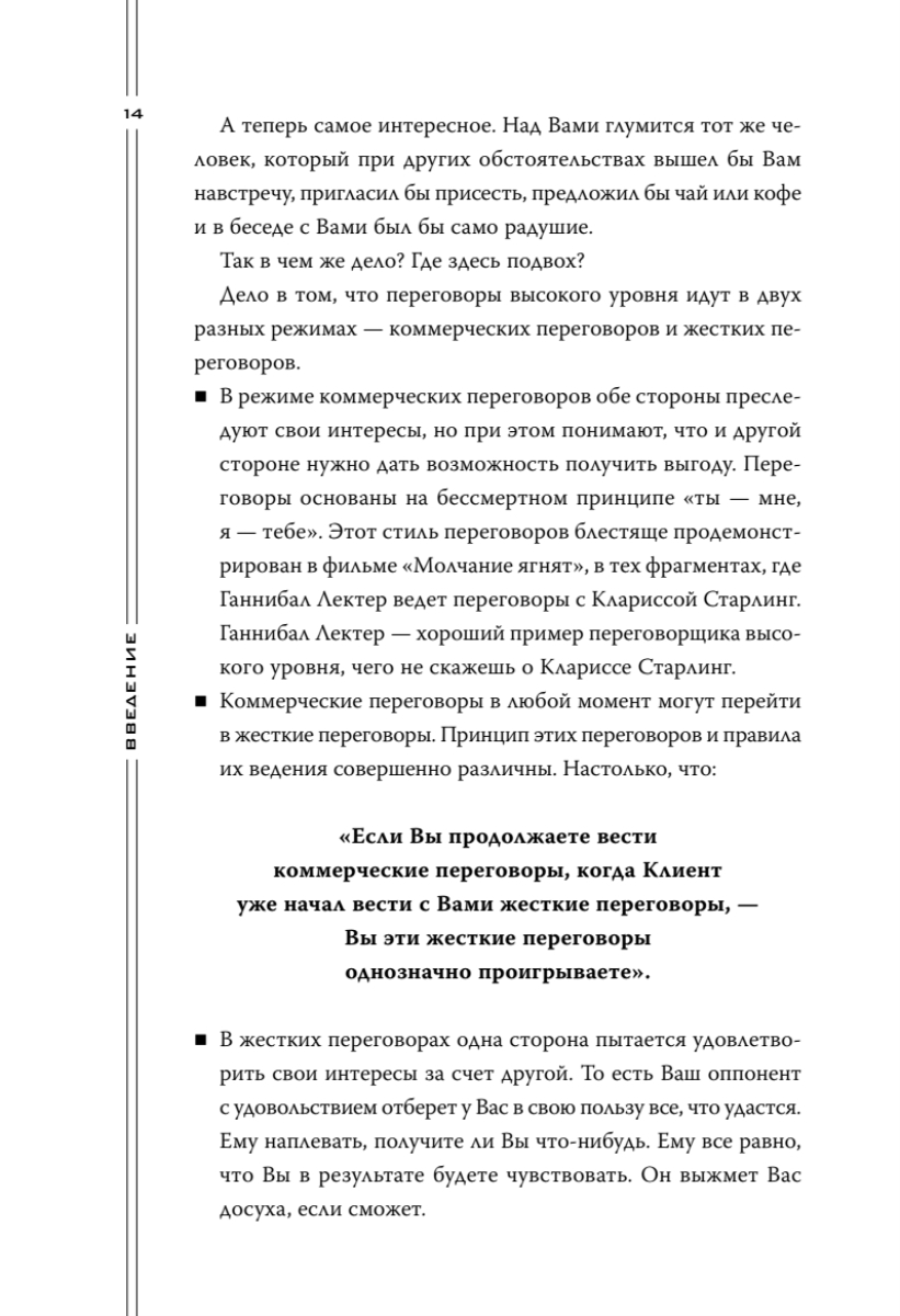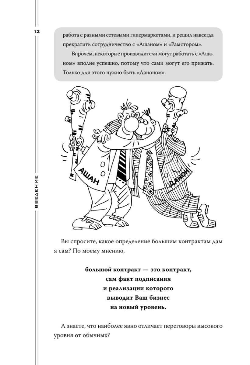 В книге автор отразил ключевую, наиболее эксклюзивную часть личного опыта, который он приобрел за девятнадцать лет непрерывных переговоров и продаж. Также в книгу вошел опыт многих участников тренингов «Большие контракты» - руководителей продаж, директоров и владельцев различных бизнесов России и СНГ. Опыт самых сильных переговорщиков-практиков – и больше ничего!