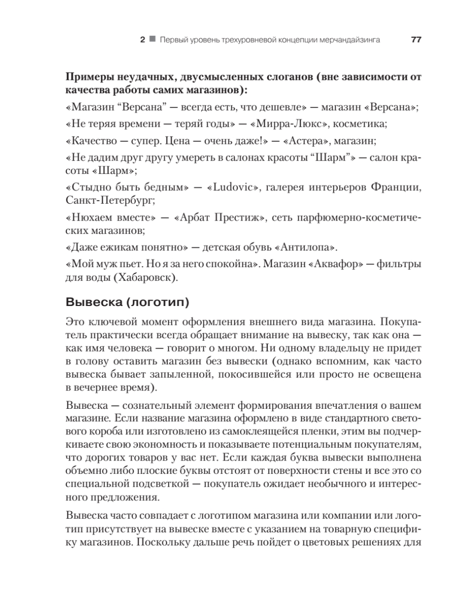 «Мерчандайзинг» — вторая из трех книг, составляющих «Курс управления ассортиментом в рознице».Материал излагается в соответствии с авторским определении мерчандайзинга - это комплекс мероприятий, проводимых в магазине для того, чтобы покупателям было удобно, приятно и выгодно совершать покупку. В этом ключе авторы подробно рассматривают трехуровневую систему мерчандайзинга – внешний вид магазина, пространство торгового зала и выкладка товара на полках.В качестве практического материала приведены рекомендации по магазинам продуктов, бытовой техники, одежды, товаров для дома и книг.Книга написана для мерчандайзеров, также будет интересна владельцам и руководителям магазинов и сотрудникам любого уровня, отвечающим за управление ассортиментом.