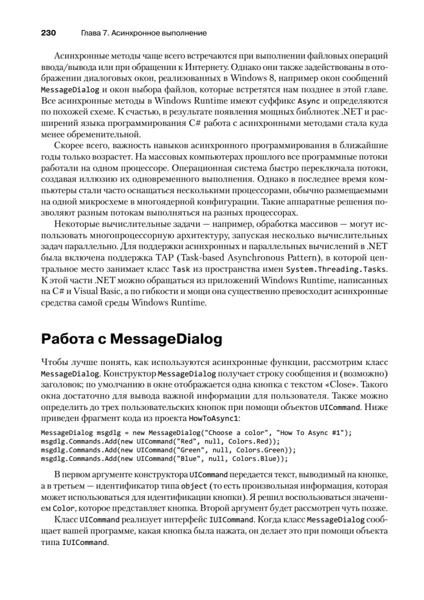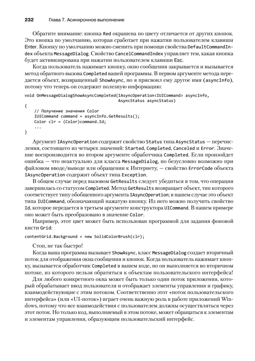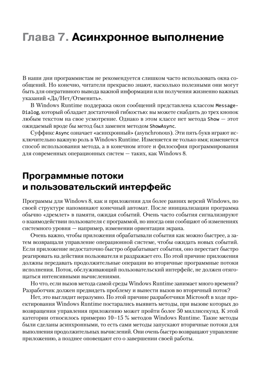 Шестое издание этой легендарной книги пришлось ждать почти 15 лет! В своем новом труде Чарльз Петцольд, известный автор и один из пионеров Windows-программирования, рассказывает о разработке приложений для Windows Store с использованием C# и XAML в среде Windows Runtime. Первая часть книги «Основы» посвящена приемам, которые особенно важны для большинства рядовых программистов: сборке готовых элементов управления в приложении и их связыванию с кодом и данными. Здесь полностью объясняется весь программный код и разметка, генерируемая Visual Studio для разных шаблонов проектов. Во второй части книги «Специальные возможности» описываются низкоуровневые и нестандартные задачи — сенсорный ввод, растровая графика, расширенное форматирование текста, печать, работа с датчиками ориентации и GPS.Книга адресуется разработчикам, уверенно владеющим языком C#, которые хотят изучить API для разработки приложений для Windows 8.