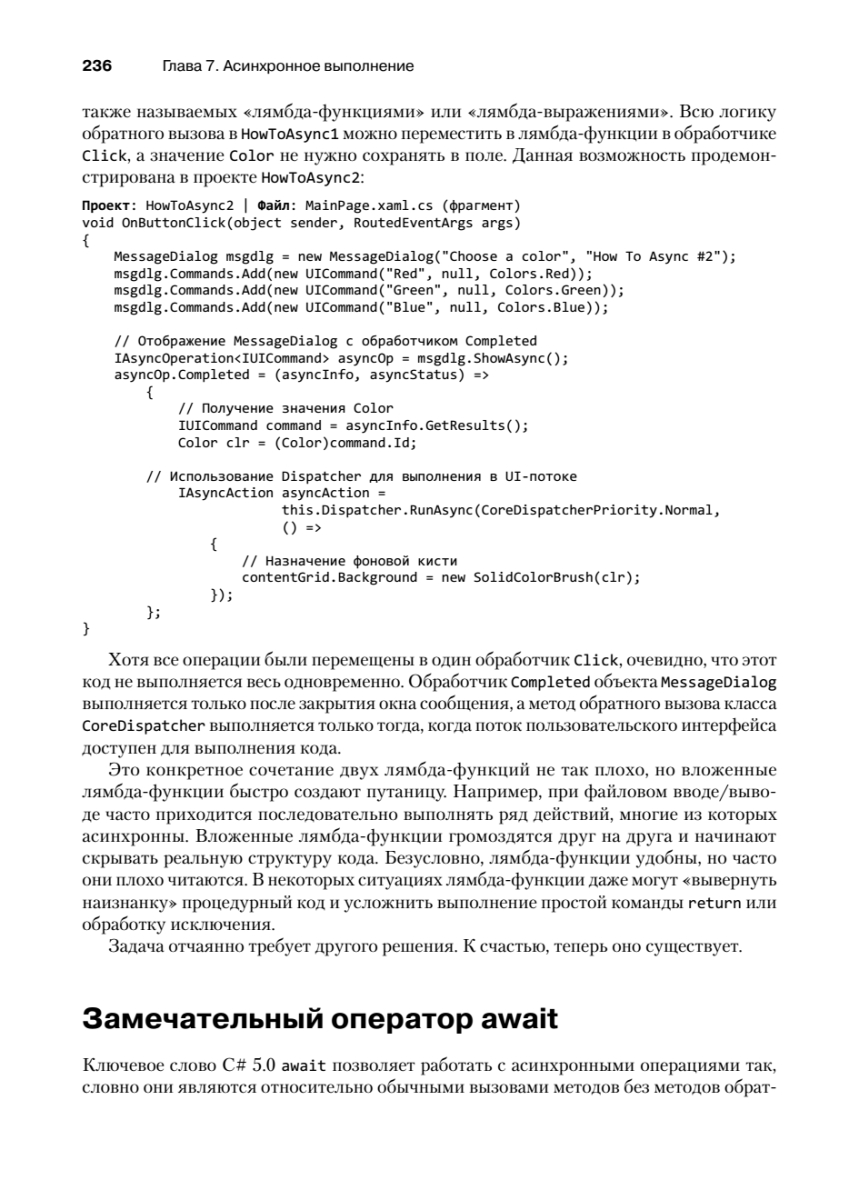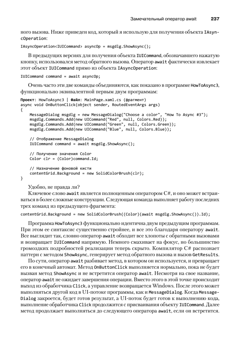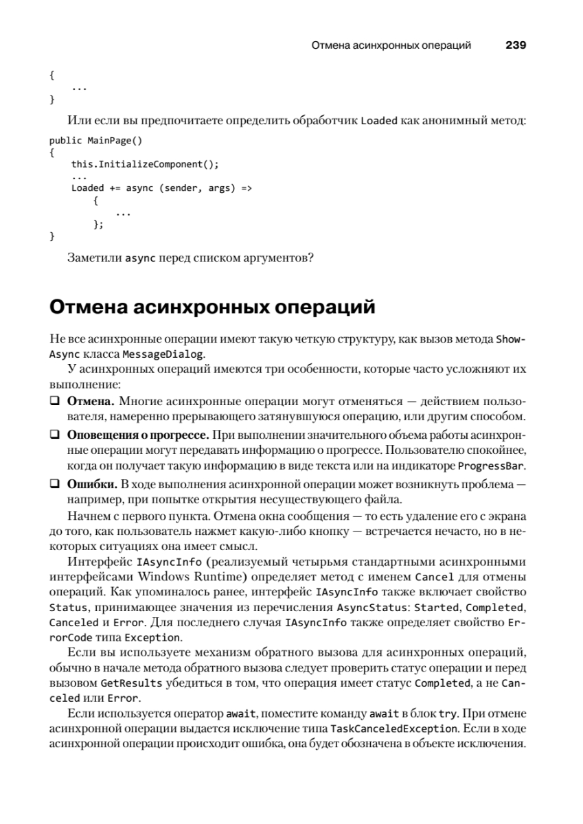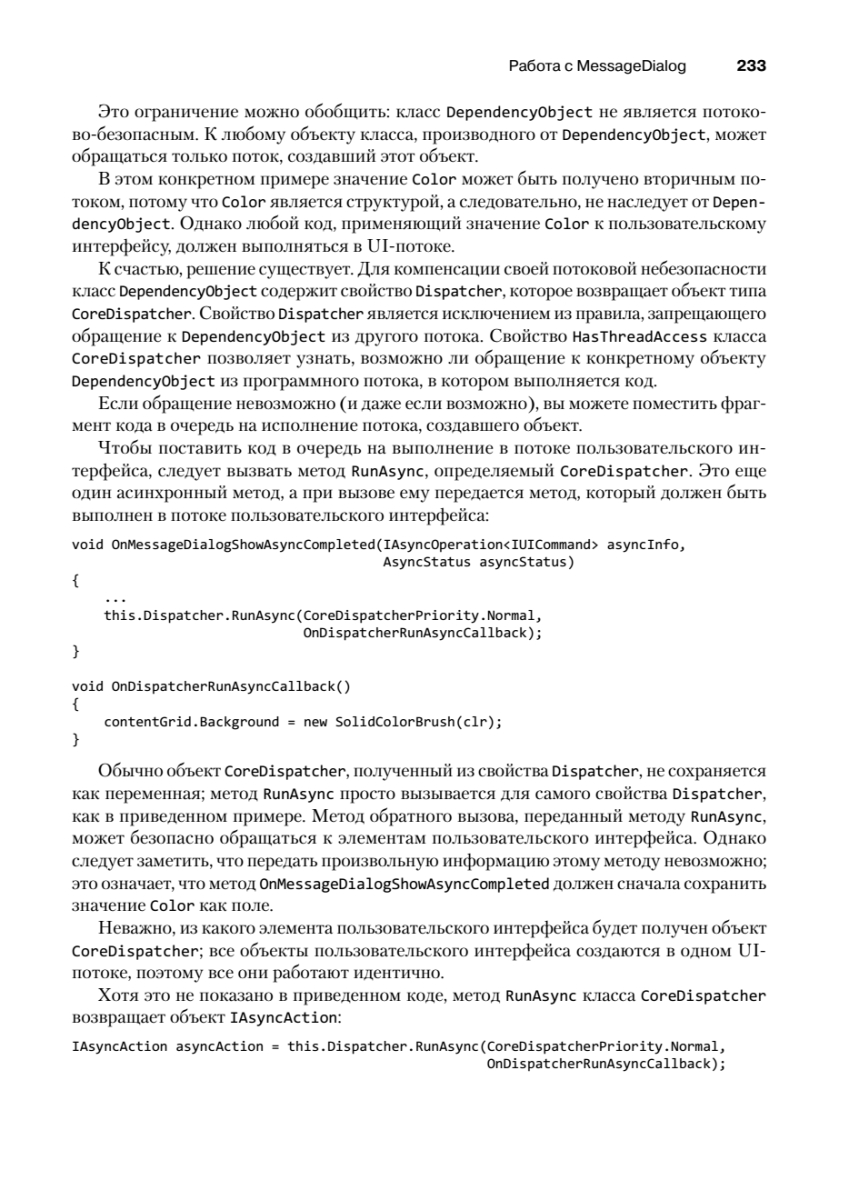 Шестое издание этой легендарной книги пришлось ждать почти 15 лет! В своем новом труде Чарльз Петцольд, известный автор и один из пионеров Windows-программирования, рассказывает о разработке приложений для Windows Store с использованием C# и XAML в среде Windows Runtime. Первая часть книги «Основы» посвящена приемам, которые особенно важны для большинства рядовых программистов: сборке готовых элементов управления в приложении и их связыванию с кодом и данными. Здесь полностью объясняется весь программный код и разметка, генерируемая Visual Studio для разных шаблонов проектов. Во второй части книги «Специальные возможности» описываются низкоуровневые и нестандартные задачи — сенсорный ввод, растровая графика, расширенное форматирование текста, печать, работа с датчиками ориентации и GPS.Книга адресуется разработчикам, уверенно владеющим языком C#, которые хотят изучить API для разработки приложений для Windows 8.