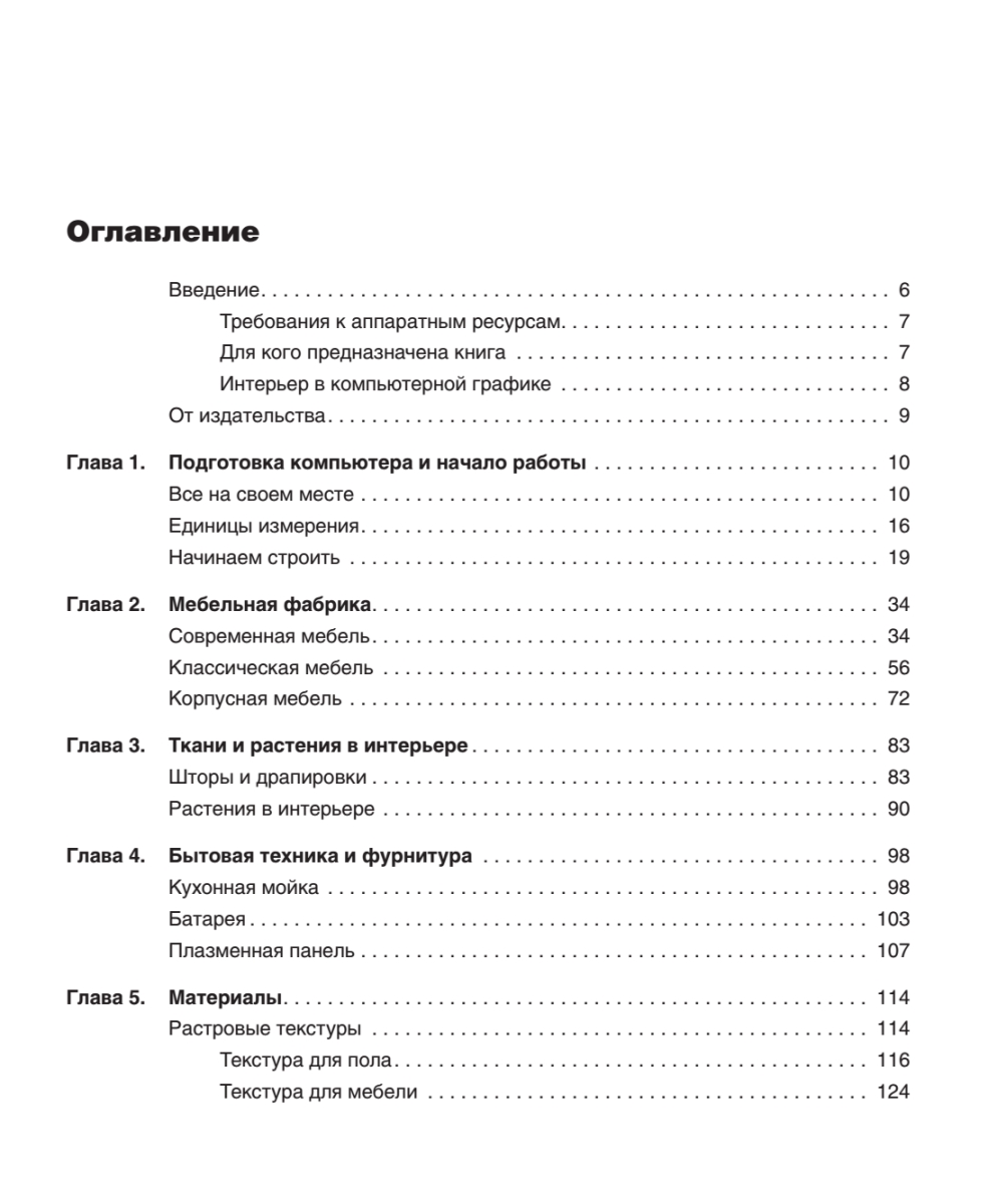С помощью этой книги вы изучите последнюю версию программы 3ds Max 2012, научитесь создавать интерьерные сцены и предметы обстановки. Преимущество данной книги перед другими изданиями подобного рода заключается в том, что все главы построены на практических авторских примерах. Вы узнаете о методах создания интерьерных сцен, их текстурировании и освещении.Издание рассчитано на опытных пользователей программы 3ds Max, желающих усовершенствовать свои дизайнерские навыки. На прилагаемом DVD — сцены описанных в книге упражнений, триал-версия 3ds Max 2012, подборка различных текстур и моделей для интерьера, а также подключаемые модули.