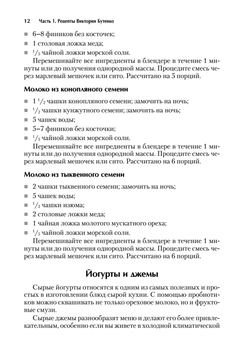 Виктория Бутенко — основоположник сыроедения в России, автор многих книг («Зелень для жизни», «12 шагов к сыроедению» и других). В результате ее просветительской деятельности миллионы людей сегодня пьют зеленые коктейли и едят сырую пищу. Если вы хотите больше узнать о Виктории, посетите сайт www.rawfamily.com.Экспресс-рецепты блюд живой кухни от Виктории Бутенко и известных русских сыроедов включают в себя сухие завтраки и йогурты, закуски и салаты, супы и соусы, основные блюда и вкуснейшие десерты, а также знаменитые зеленые коктейли. Они порадуют любого человека, заботящегося о своем здоровье, и разнообразят меню тех, кто ищет интересные и полезные блюда для повседневного рациона!