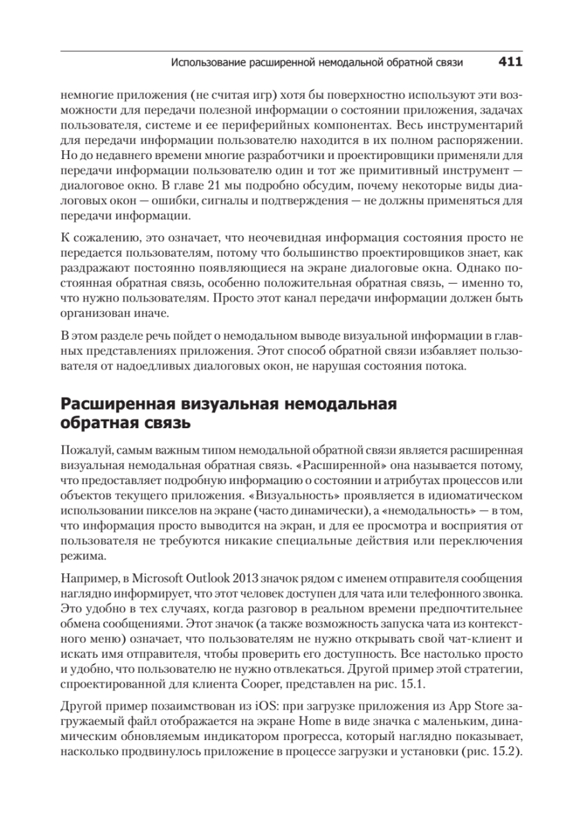 Алан Купер начал работу над первым изданием этой книги 20 лет назад. Он убеждал программистов в том, что пришла пора шагнуть навстречу пользователям и начать писать программы, которые будут им нравиться. В наши дни сложилась совершенно иная ситуация — оцифровка всех видов информации заставила пользователей с головой окунуться в новые технологии. Четвертое издание книги учитывает все изменения в отрасли, произошедшие за последние семь лет, с сохранением всех идей из предыдущих изданий, не потерявших актуальности.Проектирование взаимодействия — это ориентированный на человека подход проектирования интерактивных цифровых продуктов, сред, систем и сервисов. Много внимания уделено проектированию поведения — аспекту, которым традиционные дисциплины проектирования нередко пренебрегают. В этой книге во главу угла ставится целеориентированный подход, при котором основное внимание проектировщиков концентрируется на целях пользователей (то есть на причинах, по которым те используют данный продукт), на их ожиданиях, мировоззрении и склонностях. Именно он позволяет создавать мощные решения, с которыми приятно работать.