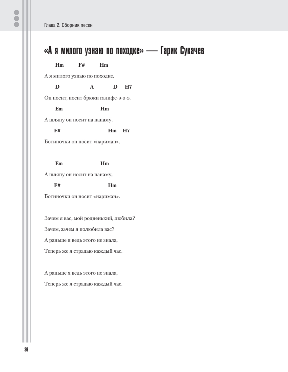 Предлагаем вашему вниманию сборник песен в жанре шансон. Тексты песен сопровождаются не только аккордами, но и табулатурами, партиями для соло-гитары. Комментарии и советы профессионала помогут вам научиться исполнять любимые песни по-настоящему красиво!