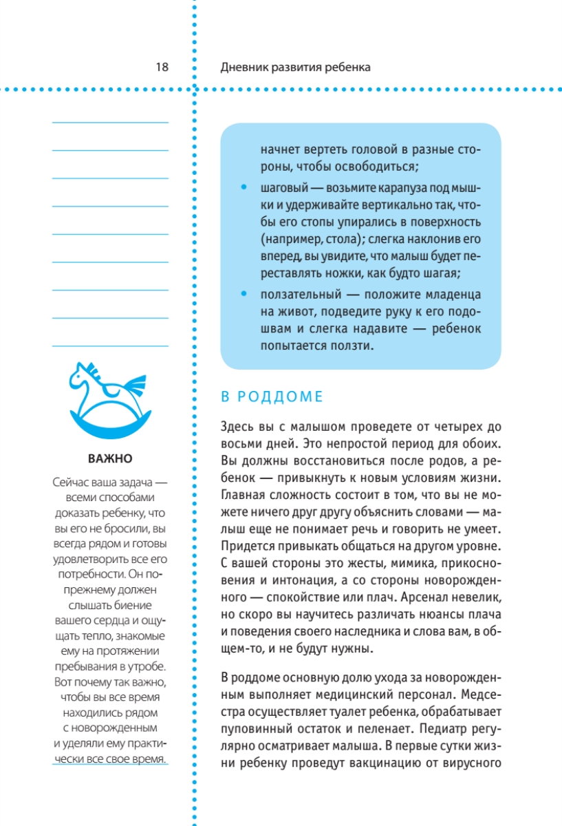 Девятимесячное ожидание малыша позади, и вы уже дома. Проблем стало больше, а еще больше — советов о том, как ухаживать за ребенком, о его развитии и питании. Наш дневник поможет вам разобраться в том, что происходит с малышом в его первый год жизни. Вы не только найдете подробное описание физиологических процессов, но и узнаете, чему должен научиться ваш ребенок, как его кормить, а также прочитаете советы по уходу.В дневнике специально предусмотрены страницы для записи, чтобы вы могли фиксировать все достижения малыша, контролировать его рост и развитие. Эта книга — уникальный советчик и помощник в первый год жизни вашего ребенка, а в дальнейшем семейная реликвия и бесценные воспоминания.