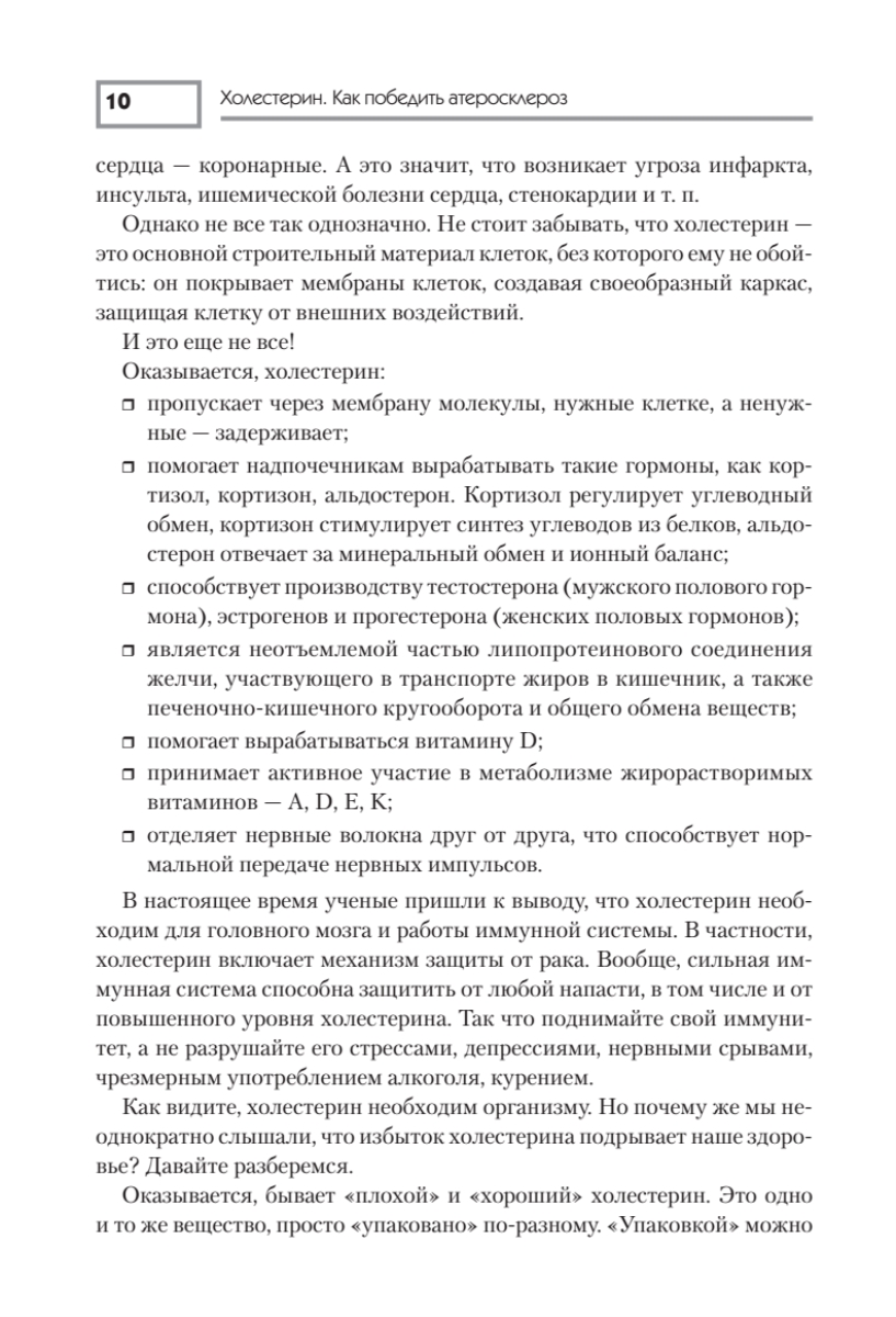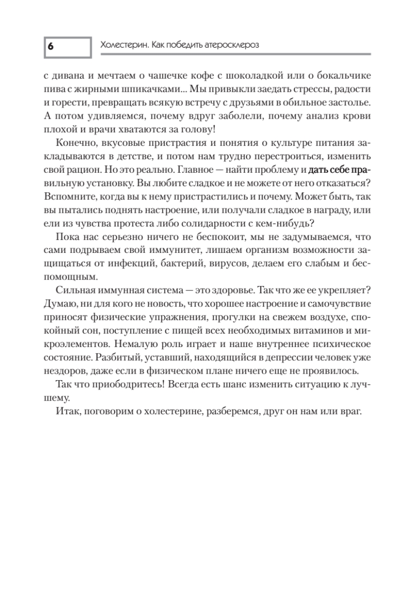 Холестерин жизненно необходим для человека. Он накапливается в нервной и жировой тканях, печени и других органах. Однако избыточное содержание холестерина в организме приводит к развитию серьезного заболевания — атеросклероза, следствием которого является инфаркт миокарда. В книге содержится информация о том, как уровень холестерина в крови связан с продолжительностью жизни, как можно нормализовать этот показатель и тем самым значительно увеличить срок жизни и улучшить ее качество.