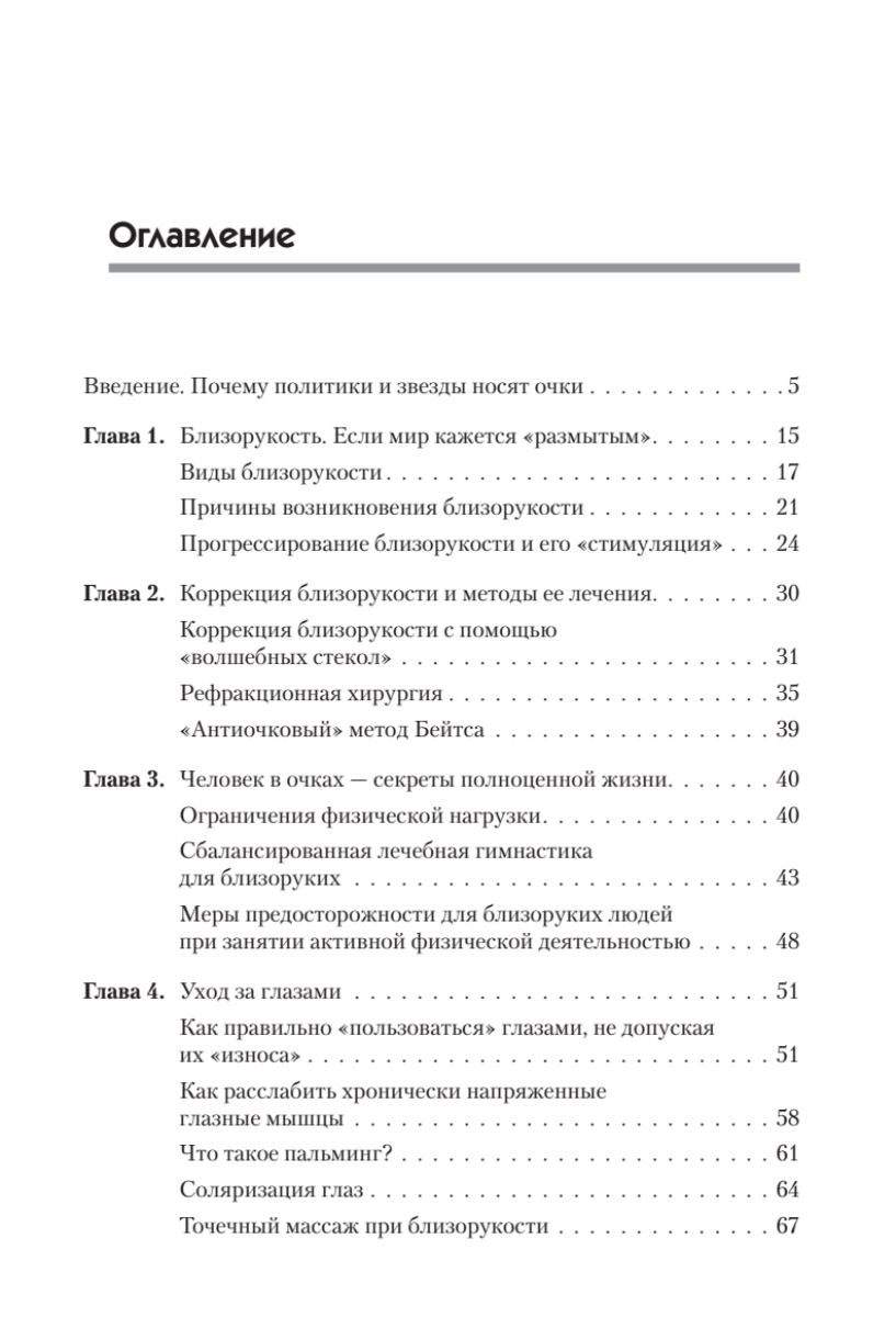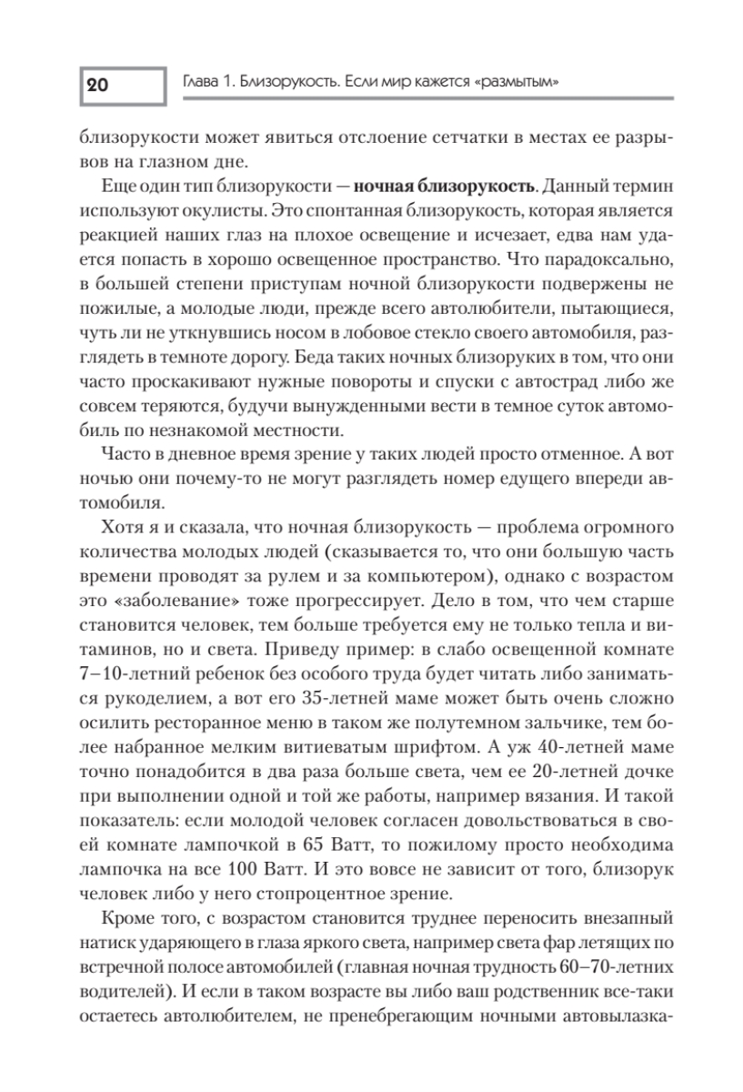 Очки, контактные линзы, операция, упражнения — что является наиболее эффективным оружием в борьбе с близорукостью? Ответ вы найдете в этой книге. Кроме того, вы узнаете много нового о правильном подборе очков и контактных линз, освоите профилактические и лечебные упражнения для глаз, а также секреты макияжа для близоруких.