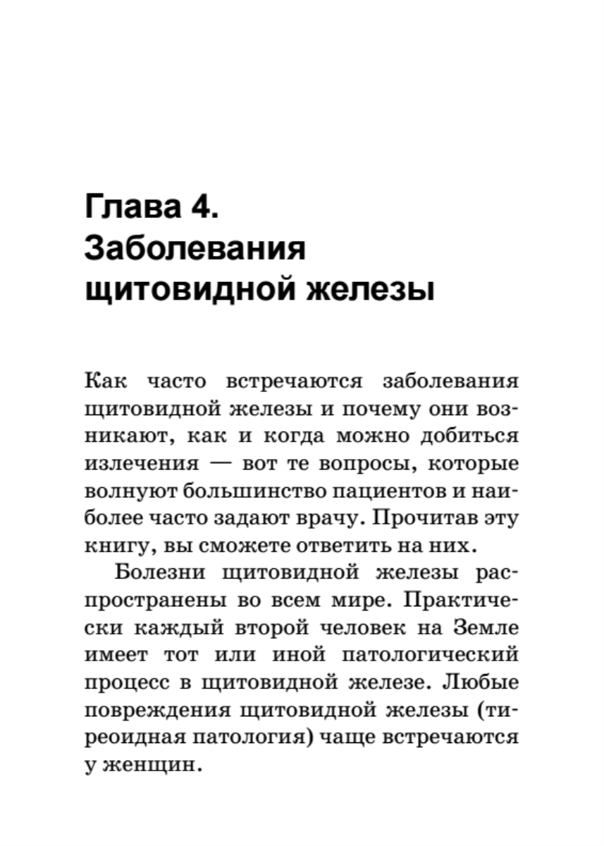 Почему возникают заболевания щитовидной железы? Как вовремя определить начало болезни? Каким образом добиться окончательного выздоровления? Книга даст ответы на эти и многие другие вопросы. Она поможет разобраться в устройстве эндокринной системы и подскажет, как не пропустить тревожные симптомы и заподозрить у себя болезнь. А если вы уже страдаете заболеваниями щитовидной железы, то в книге вы найдете исчерпывающую информацию о методах диагностики и лечения многих недугов: гипотериоза, тиреодита, диффузного токсического зоба, злокачественной опухоли щитовидной железы и других. Большое внимание уделено и профилактике болезней щитовидной железы.