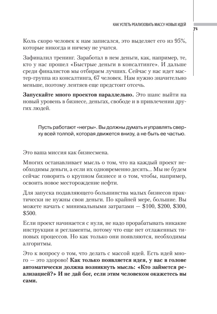 Книга содержит набор практических рекомендаций, помогающих решить 10 главных проблем бизнеса. И не просто решить их, а еще и заработать деньги, приобрести авторитет у сотрудников и клиентов, а также получить дополнительное свободное время. Весь материал основан на российских реалиях. Авторы делятся работающими приемами, уже давшими отличные результаты их многочисленным ученикам в различных сферах бизнеса. В книге представлены готовые алгоритмы и схемы работы, которые ускоряют и облегчают внедрение новых приемов. Ознакомившись с изданием, вы сможете грамотно организовать бизнес-процессы и получать больше прибыли и удовольствия от своей работы.Книга адресована в первую очередь владельцам и управляющим компаниями, тем, кто только собирается начать свое дело, а также руководителям служб маркетинга и продаж, производственных служб и отделов по работе с клиентами.