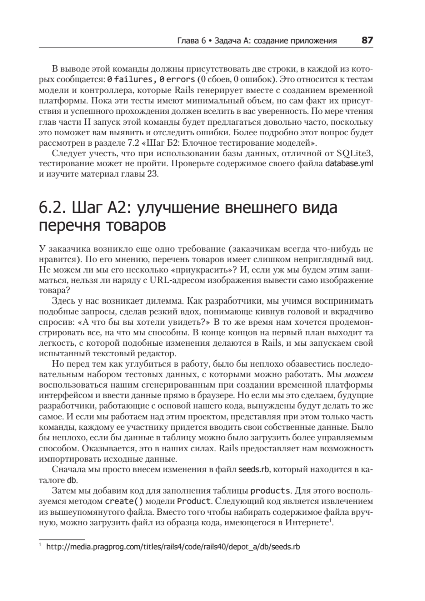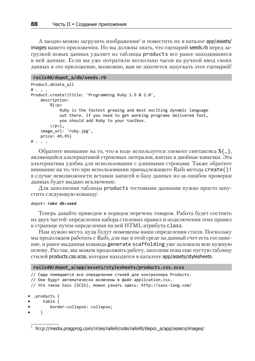 Перед вами новое издание бестселлера «Agile web development with Rails», написанного Сэмом Руби — руководителем Apache Software Foundation и разработчиком формата Atom, Дэйвом Томасом — автором книги «Programming Ruby» и Дэвидом Хэнссоном — создателем технологии Rails.Rails представляет собой среду, облегчающую разработку, развертывание и обслуживание веб-приложений. За время, прошедшее с момента ее первого релиза, Rails прошла путь от малоизвестной технологии до феномена мирового масштаба и стала именно той средой, которую выбирают, чтобы создавать так называемые «приложения Web 2.0».Эта книга, уже давно ставшая настольной по изучению Ruby on Rails, предназначена для всех программистов, собирающихся создавать и развертывать современные веб-приложения. Из первой части книги вы получите начальное представление о языке Ruby и общие сведения о самой среде Rails. Далее на примере создания интернет-магазина вы изучите концепции, положенные в основу Rails. В третьей части рассматривается вся экосистема Rails: ее функции, возможности и дополнительные модули. Обновленное издание книги описывает работу с Rails поколения 4 и Ruby 1.9 и 2.0.
