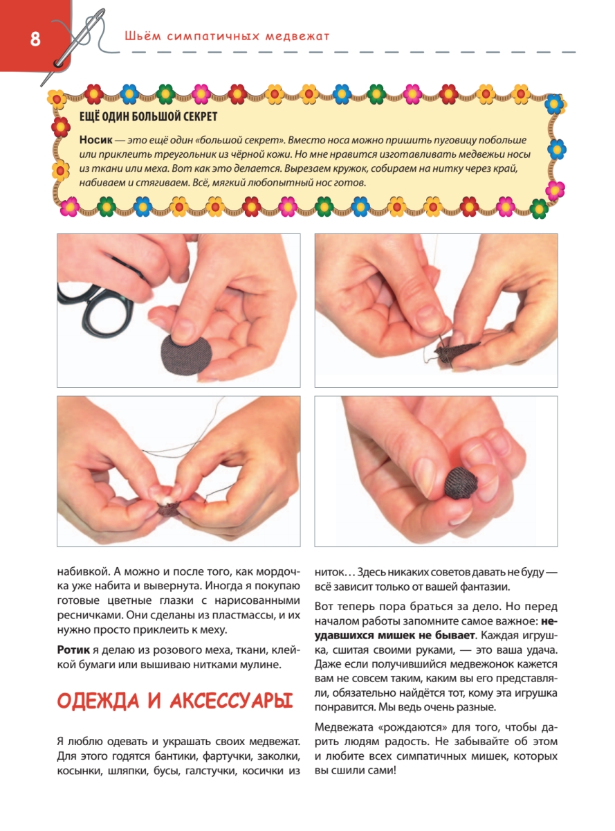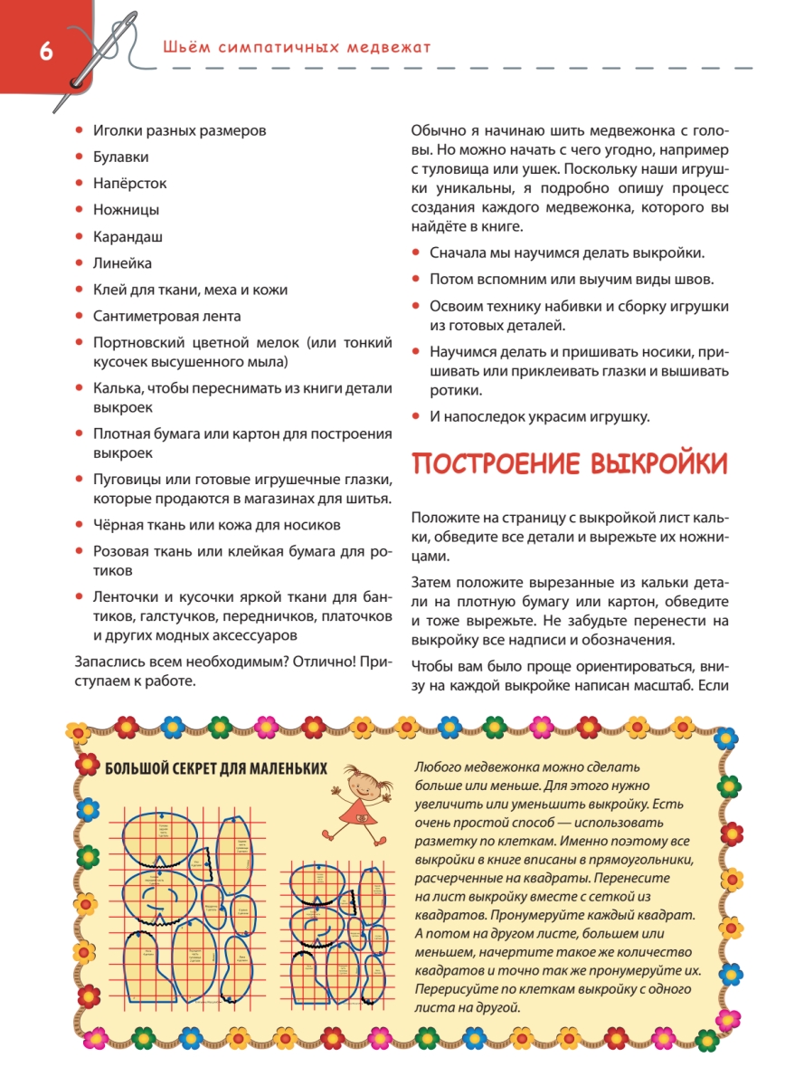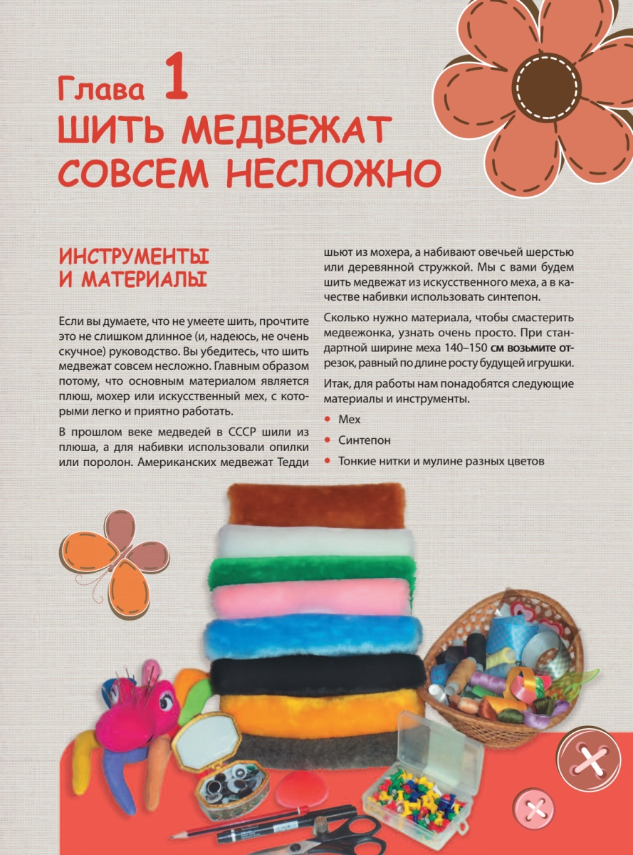 Сшить мягкого, милого, забавного медвежонка, используя наши советы, выкройки и инструкции, проще простого. Убедитесь в этом сами. Выберите из коллекции самую очаровательную игрушку и приступайте.Как выбрать необходимые материалы и инструменты.Как работать с выкройками.Как определить размеры и пропорции.Как сшивать детали игрушки.Как сделать набивку медвежонка.Как прикрепить лапки, глазки, носик.В нашей книге мы расскажем и покажем, как все это сделать. Но на этом процесс творчества не закончится. Игровые сюжеты и занимательные истории, героями которых станут сшитые вами персонажи, позволят вашему малышу не просто поставить игрушку на полку, а отправиться вместе с ней в удивительную страну плюшевых медвежат.