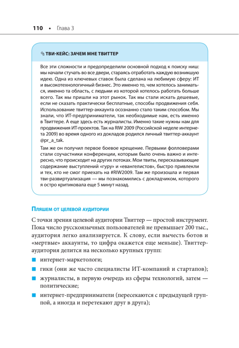 Количество пользователей Твиттера давно превысило цифру 150 миллионов. Российских твиттерян уже больше 500 тысяч и прирост осуществляется совершенно немыслимыми темпами — за последний год количество русскоязычных пользователей Твиттера выросло в 26 раз. А после регистрации личного аккаунта президентом Дмитрием Медведевым в России случился буквально тви-бум. Что же представляет собой "чирикающий" сервис? Чем он отличается от других социальных сетей и для чего он может быть полезен? С чего начать, как пользоваться арсеналом возможностей, которые предоставляет сам Твиттер и сотни сопутствующих сервисов? Как создать корпоративный Твиттер и заставить его работать на свой бизнес? На эти и многие другие вопросы вы найдете ответы в этой книге.
