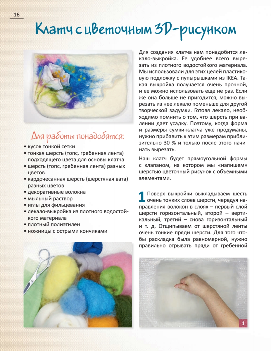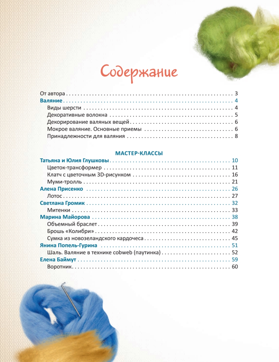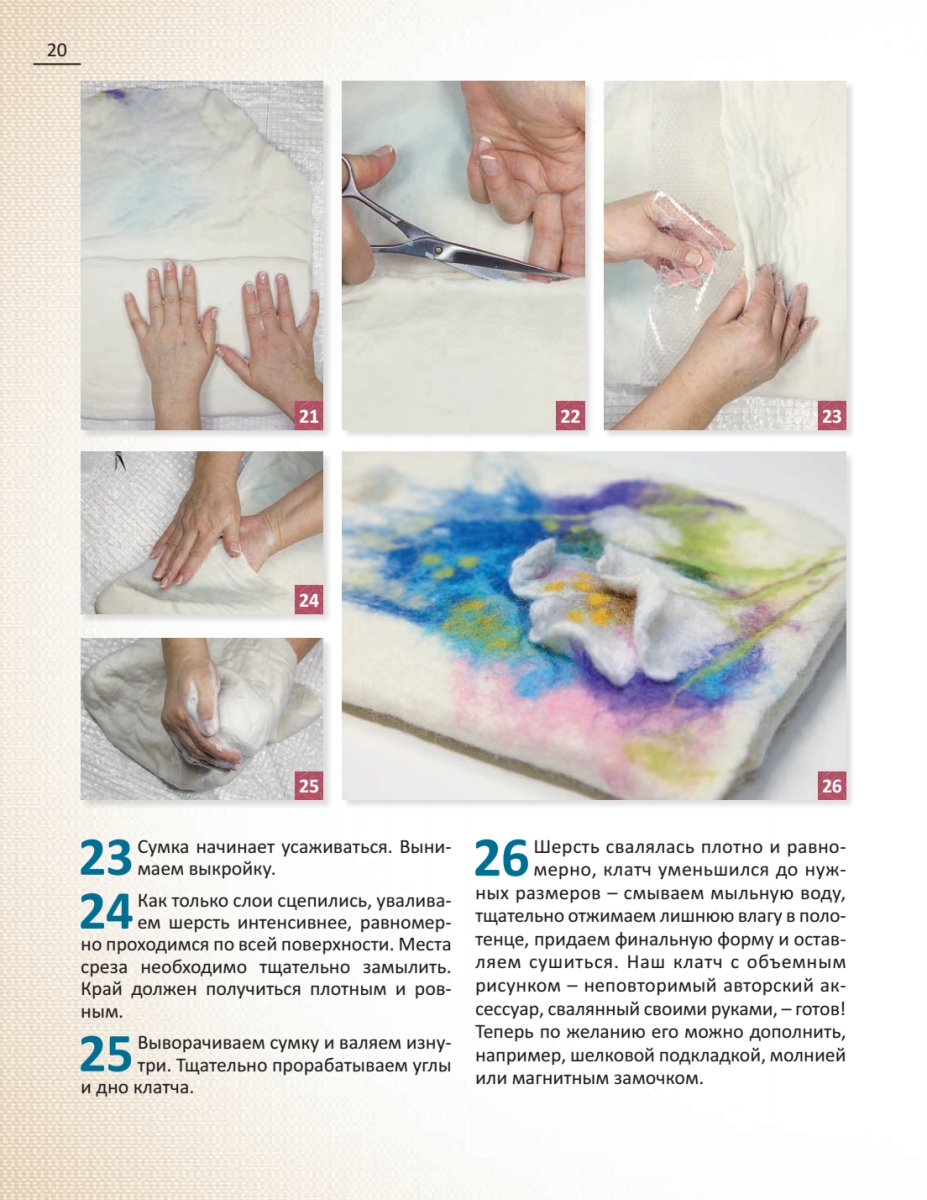Книга знакомит читателей с авторской методикой создания неповторимых аксессуаров и украшений в технике мокрого валяния. Этот мир стиля, творчества и позитива откроют для вас лучшие мастера. На пошаговых мастер-классах они покажут, как создавать оригинальные, неповторимые вещи, которые вы будете носить каждый день и которые, безусловно, украсят ваш образ. Даже не имея навыков валяния, вы сможете сотворить своими руками теплое и красивое шерстяное чудо.