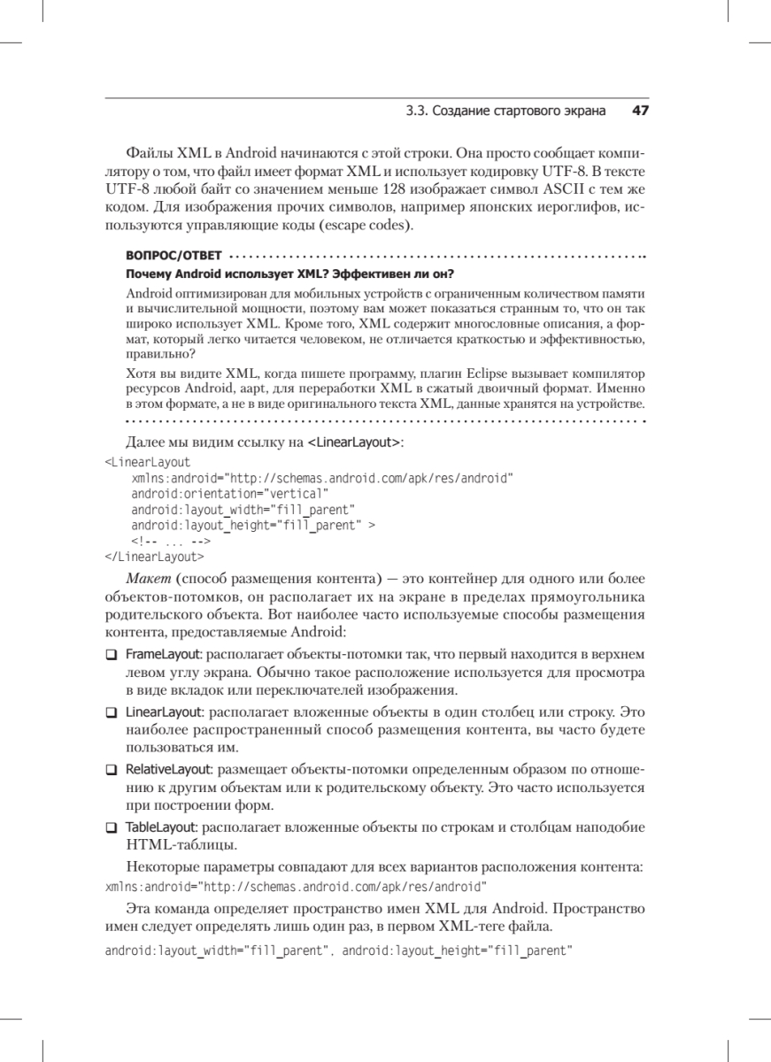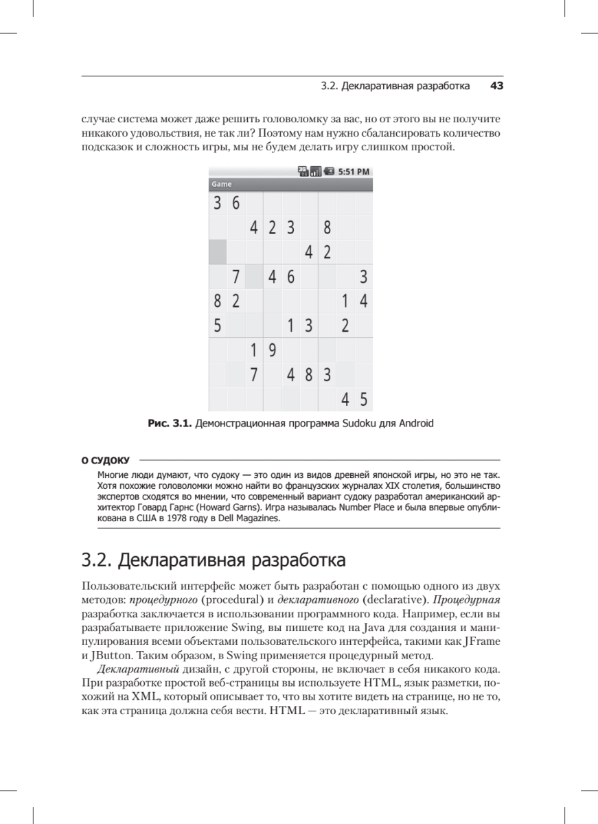 Операционная система Android установлена внутри миллионов сотовых телефонов, коммуникаторов, планшетных компьютеров, нетбуков и смартбуков. Она разработана Google и Open Handset Alliance на основе ядра Linux.С помощью этой книги вы сможете создать собственное приложение для Android всего за несколько минут! Затем мы перейдем к более сложному примеру: программированию игры Android Sudoku. Шаг за шагом дописывая код игры, вы изучите основы программирования для Android. Вы научитесь писать приложения для аудио- и видеоконтента, работать с графикой, используя 2D и 3D OpenGL, обрабатывать веб-страницы и веб-сервисы, хранить данные с SQLite. Вы также узнаете, как продавать ваши приложения на Android Market. Если вы любите писать программы больше, чем читать о них, то эта книга для вас.