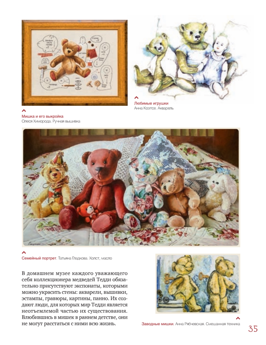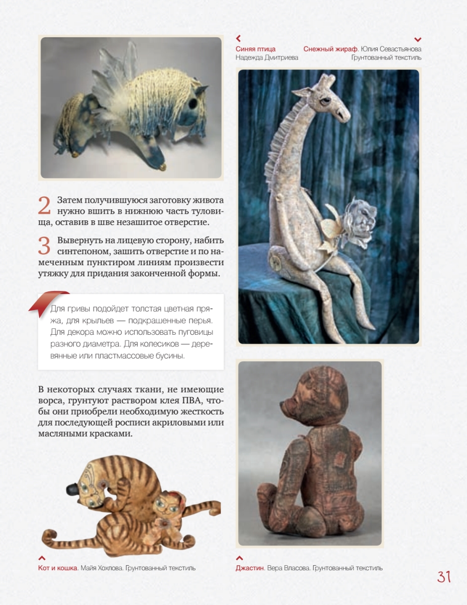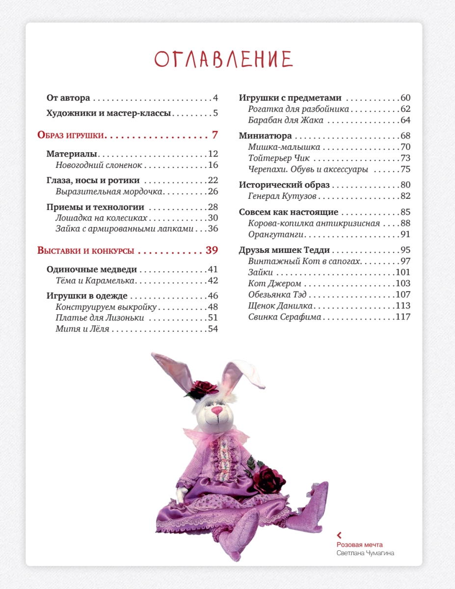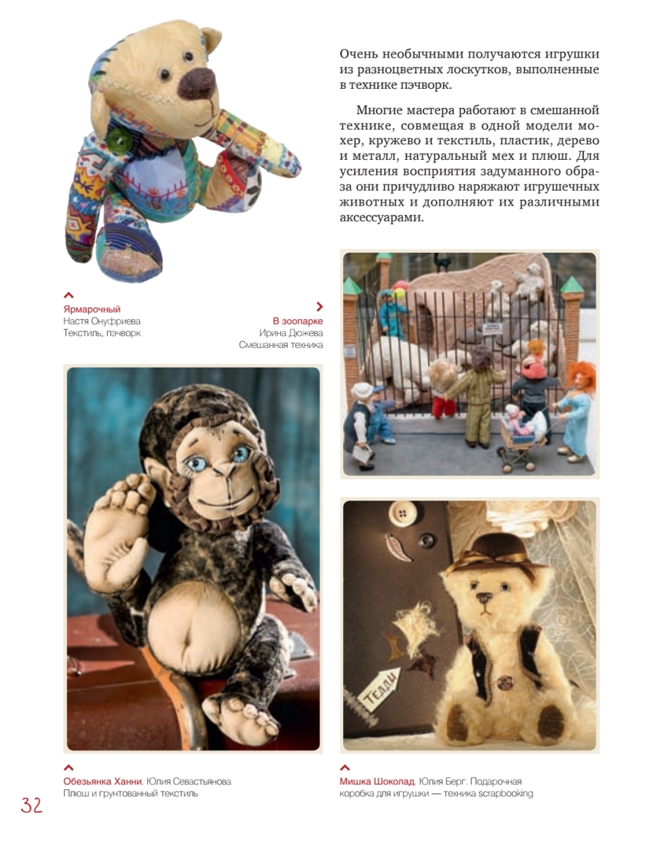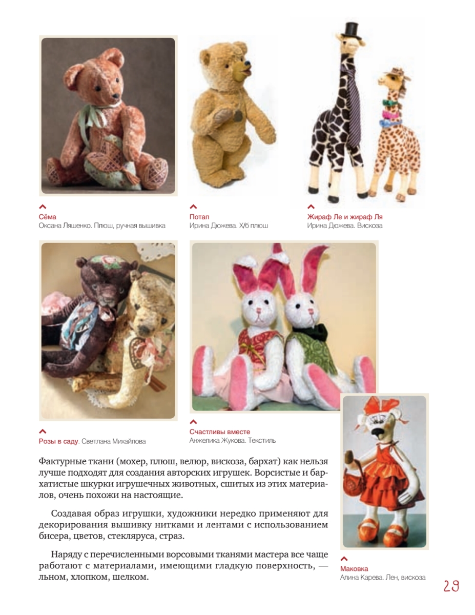 Заимствуя авторские выкройки, следуя подробным иллюстрированным мастер-классам и, конечно же, добавляя свою фантазию, каждый сможет создать неповторимого кота, зайца, мишку, корову, свинку или даже обезьянку, сшить для них стильные наряды, сделать аксессуары, подчеркивающие характер игрушки. Особую ценность представляют вдохновляющие фотографии самых интересных и знаменитых работ известнейших мастеров-кукольников, редких экспонатов из частных коллекций. В книге читатель также найдет полезную информацию о международных конкурсах, посвященных мишкам Тедди и их друзьям.