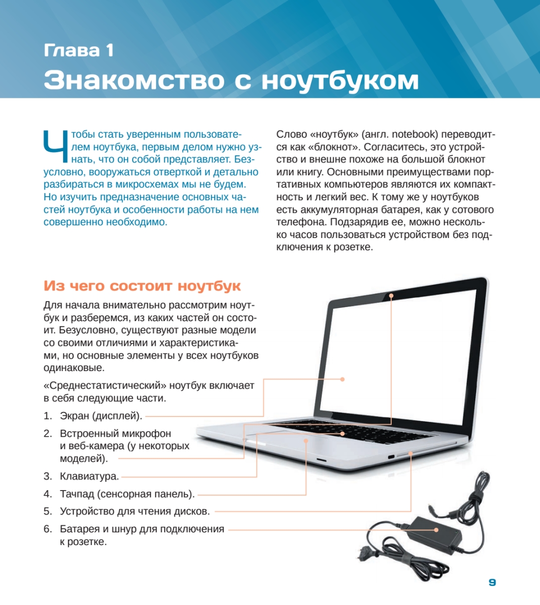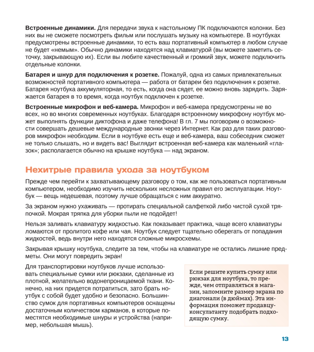 Эта книга написана специально для тех, кто впервые начинает пользоваться ноутбуком и операционной системой Windows. Здесь вы не найдете сложных терминов и непонятных определений. Ведь освоить ноутбук не сложнее, чем любое другое электронное устройство. Материал составлен максимально просто и сопровождается огромным количеством цветных иллюстраций. Все, что вам понадобится сделать, — прочитать немного текста и повторить действие, которое описано на странице. Вы узнаете, что такое меню Пуск, Проводник, папки, файлы, как пользоваться Интернетом, электронной почтой, как бесплатно звонить через Skype, и многое другое. Ноутбук — это очень просто! Ведь не зря говорят, что учиться никогда не поздно!
