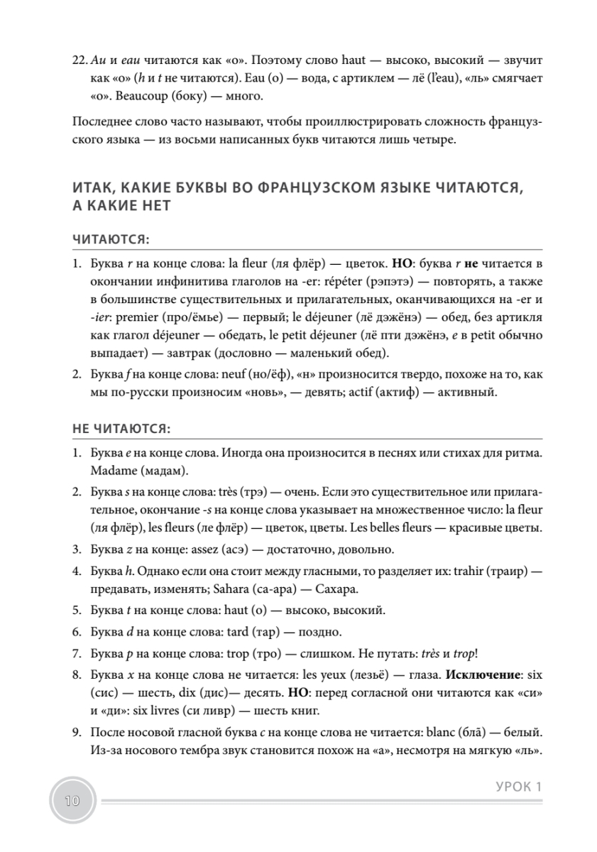 Этот самоучитель создан опытным преподавателем французского языка по разработанной ею упрощенной методике и направлен на эффективное овладение живой разговорной речью. Курс состоит из 17 уроков, изучение каждого требует 1,5 - 2 часов. Вы сможете говорить и составлять простые предложения уже после первого урока. Самоучитель содержит основные правила произношения и грамматики, русскую транскрипцию, максимально близкую к французской фонетике, тематические словари, спряжения самых необходимых глаголов, образование пяти наиболее употребительных времен, упражнения с ключами, диалоги и разговорные выражения. Курс очень интенсивен, так что если буквально через месяц вам ехать в Париж, он поможет решить вашу проблему. К самоучителю прилагается CD со звукозаписью всех уроков.