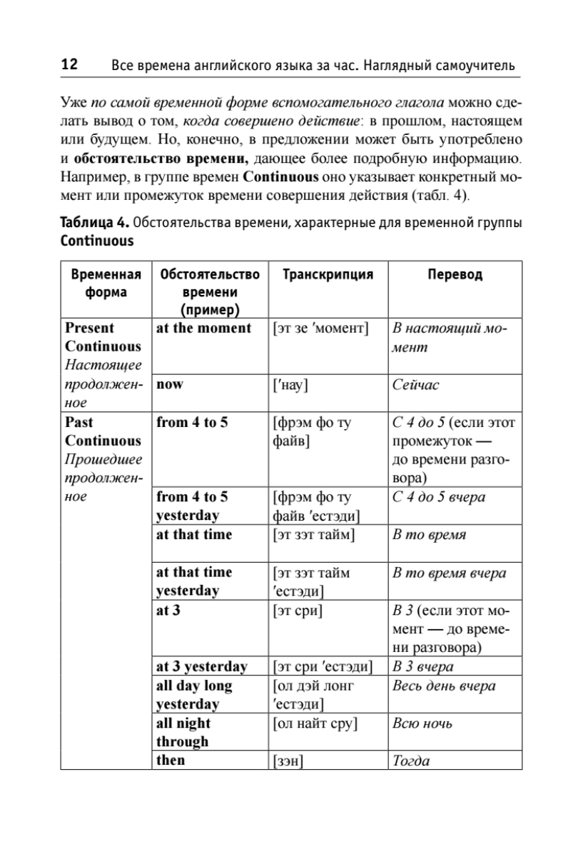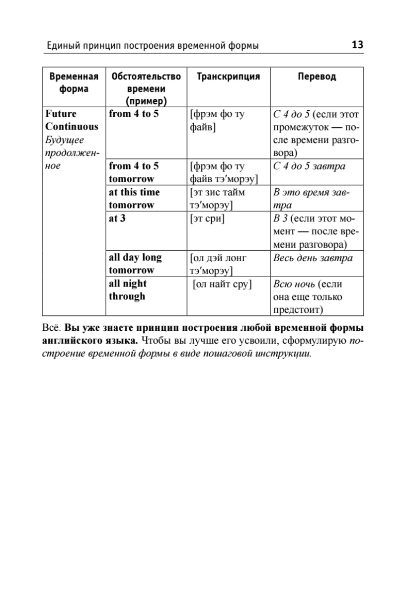 Татьяна Трофименко — преподаватель, автор бестселлера «505 самых важных английских фраз», создатель собственной оригинальной методики, основанной на едином принципе построения временных форм и фраз. Имеет большой опыт как индивидуального, так и группового обучения английскому языку.В английском языке не 3 времени, как в русском, а 26! Но освоить их можно буквально за час, а выучить — за несколько дней. Дерзайте!«Мои ученики говорят, что учиться со мной с каждым уроком становится легче. А обычно, наоборот, обстановка нагнетается: мол, чем дальше, тем сложнее материал. На самом деле английский язык очень хорошо поддается алгоритмизации, и выучить его просто».