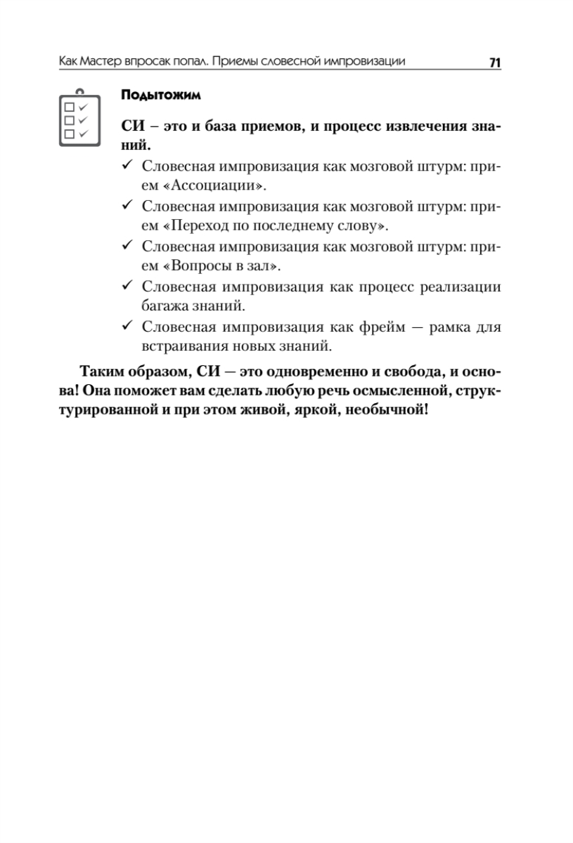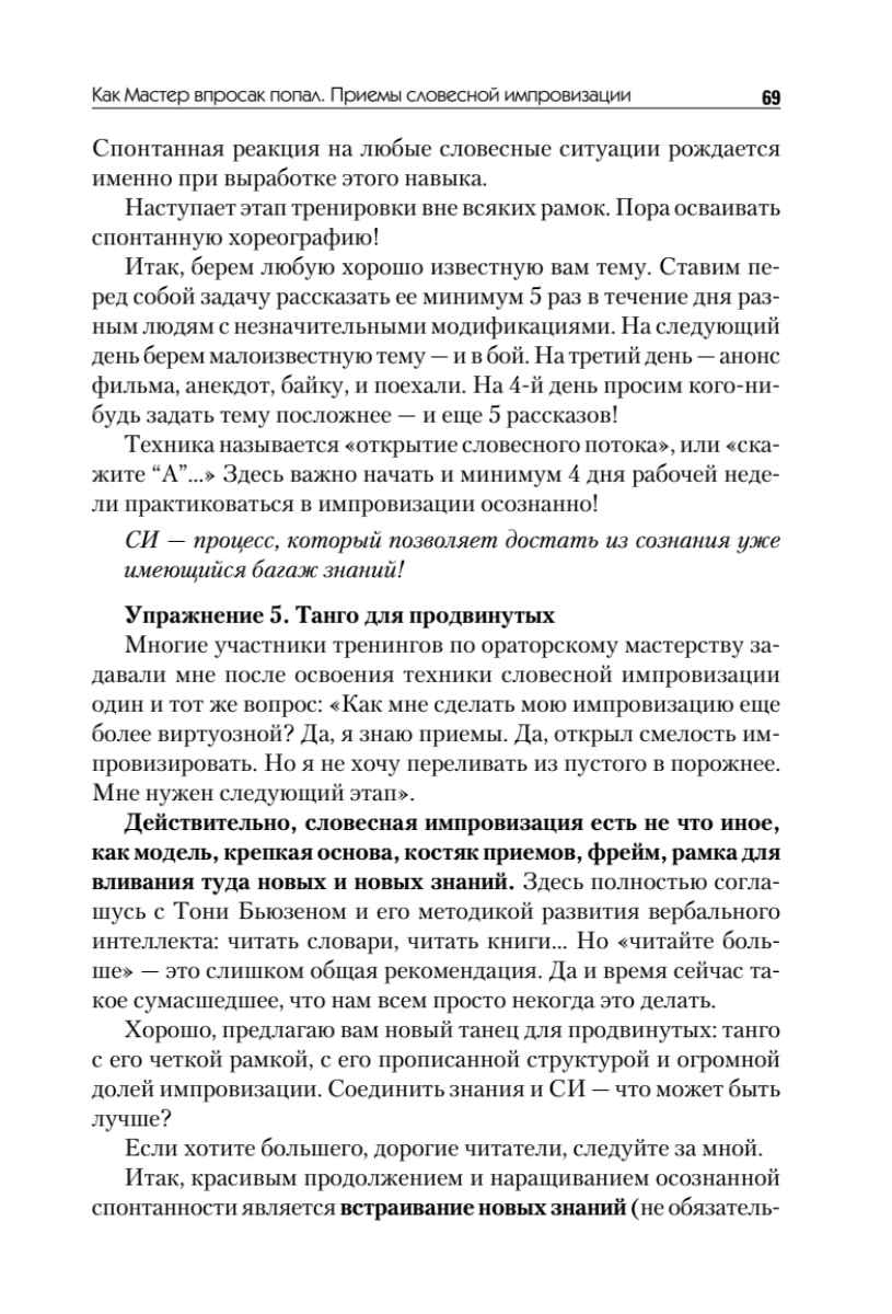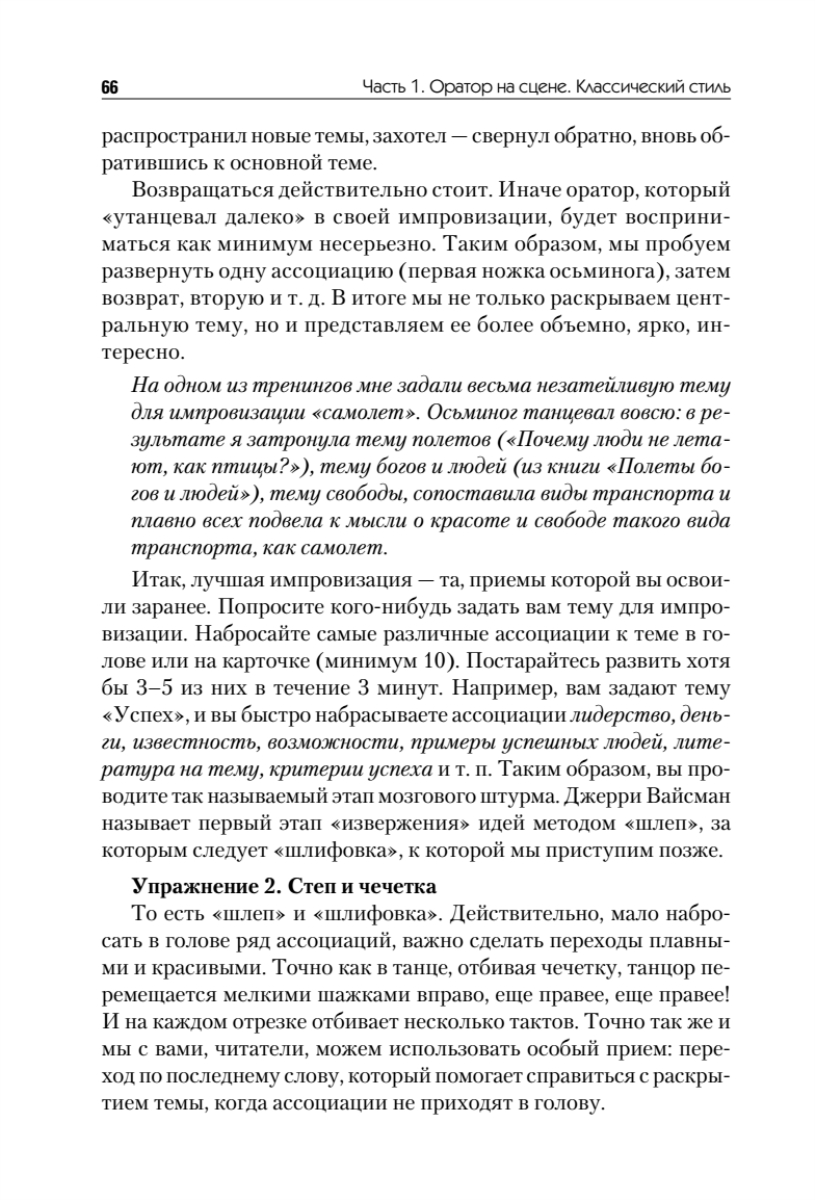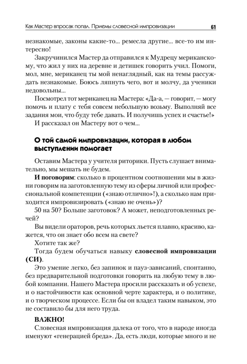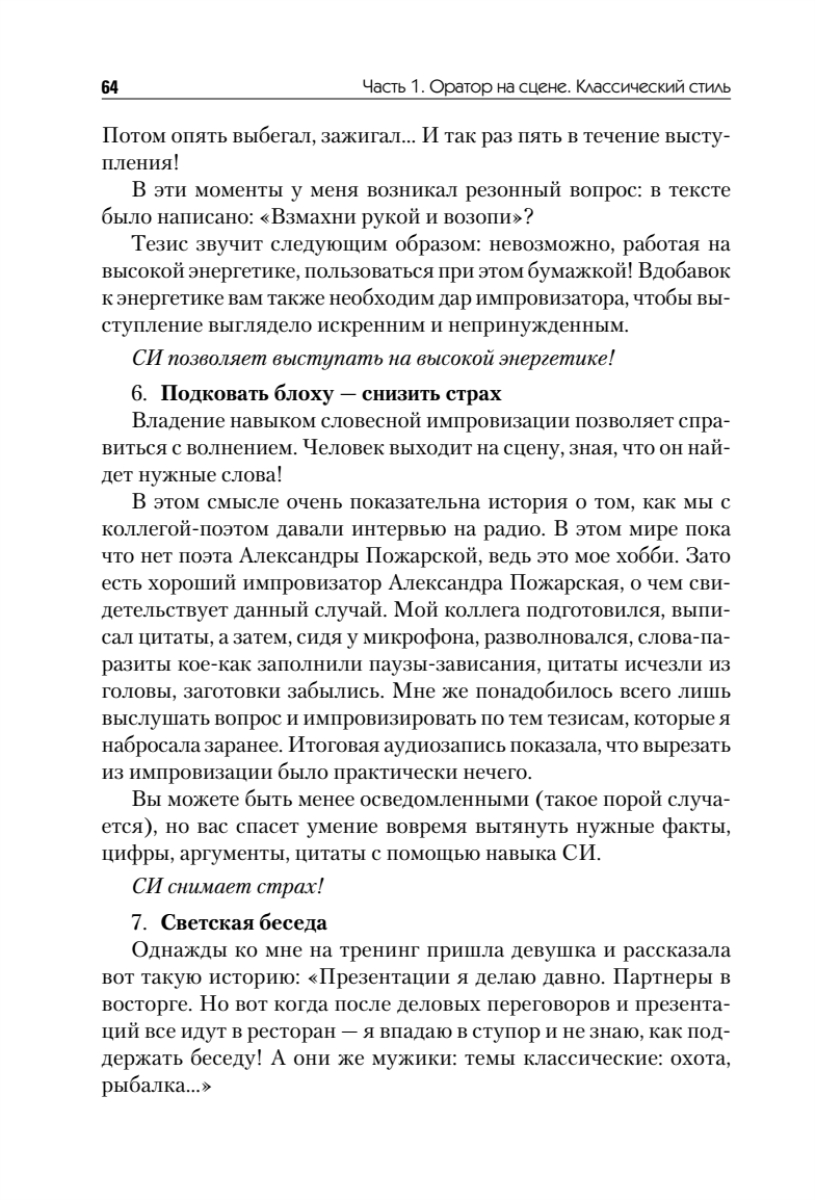 Слово — твой стартовый капитал, твой стиль жизни, ее нравственная и духовная основа. Правильно сказанные слова составляют блестящую речь, которую называют ораторским искусством. Как ни крути, его освоение и точное применение бьет точно в цель. Задача этой книги – расширить привычное понимание ораторского мастерства как узкого жанра выступлений со сцены. Издание состоит из трех частей: оратор как выступающий перед аудиторией; оратор как коммуникатор; оратор как лидер. Основное внимание уделено проработке и освоению приемов жанра публичных выступлений. Кроме того, дана четкая схема подготовки к каждому жанру: small-talk, переговоры, управление конфликтом, презентация, выступление перед аудиторией. Лучшие техники коммуникации, представленные автором, позволят вам избавиться от боязни сцены, волнения, зажатости, помогут стать уверенным в себе оратором. Оратором с большой буквы.