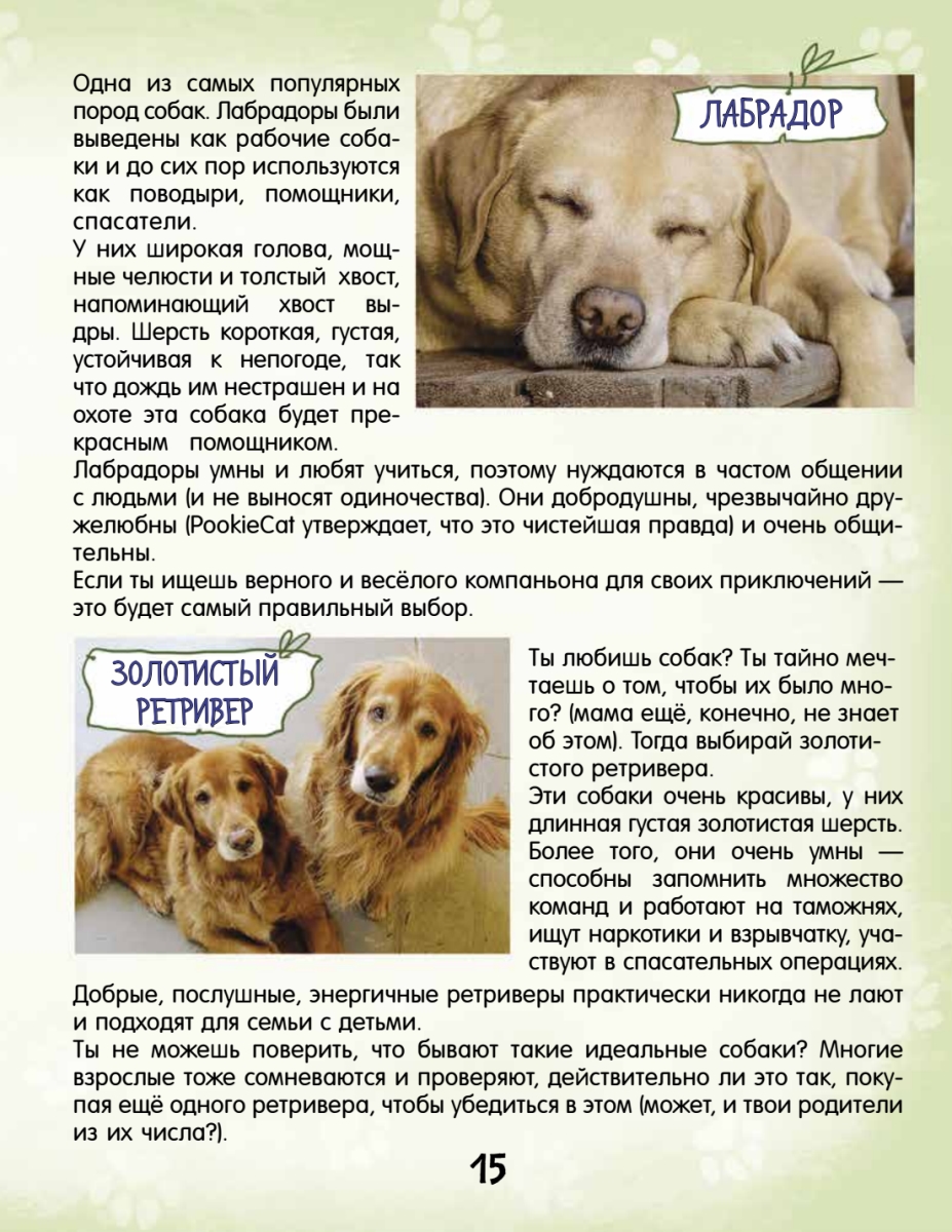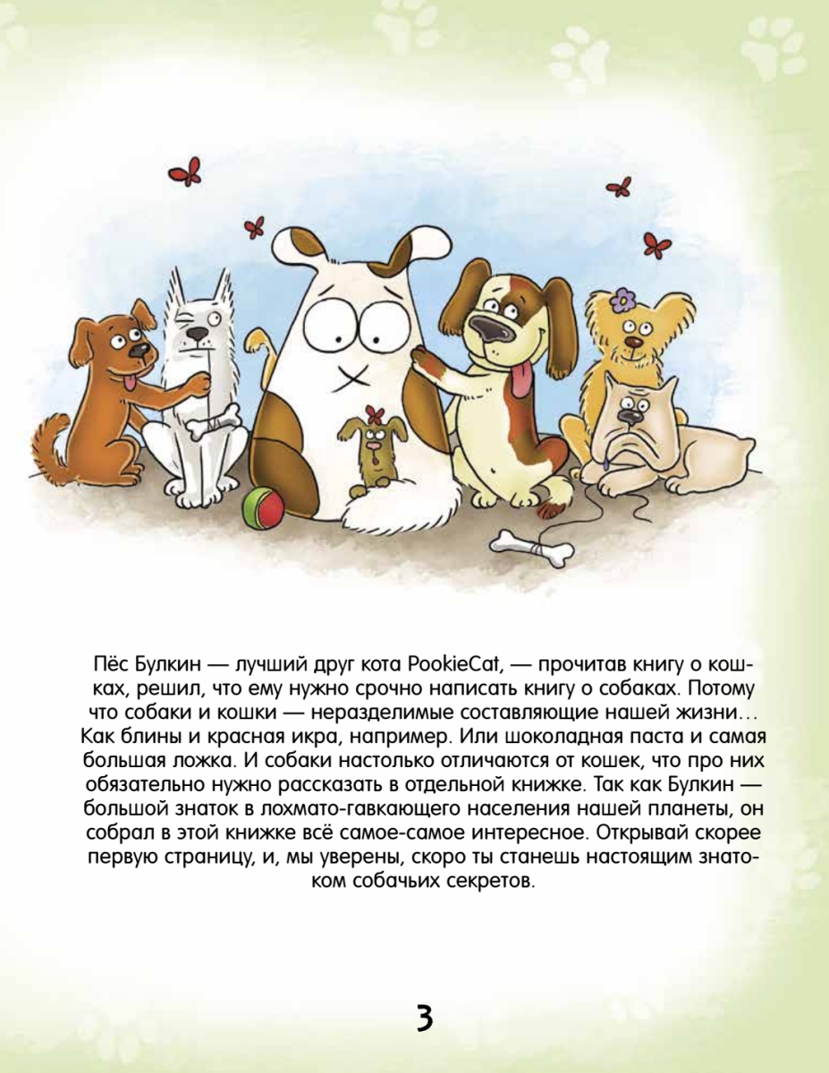 Вы слышали о PookieCat? Этот замечательный оранжевый кот писал книгу о своих сородичах — «Почему кот мурлычет и ещё 100 ответов на детские „почему“ про кошек от PookieCat». Его друг — пёс Булкин — решил, что теперь он просто обязан написать книгу о собаках. Ведь он знает о них всё! А теперь и вы узнаете все собачьи секреты. Открывайте первую страницу — и познакомьтесь с собаками поближе.