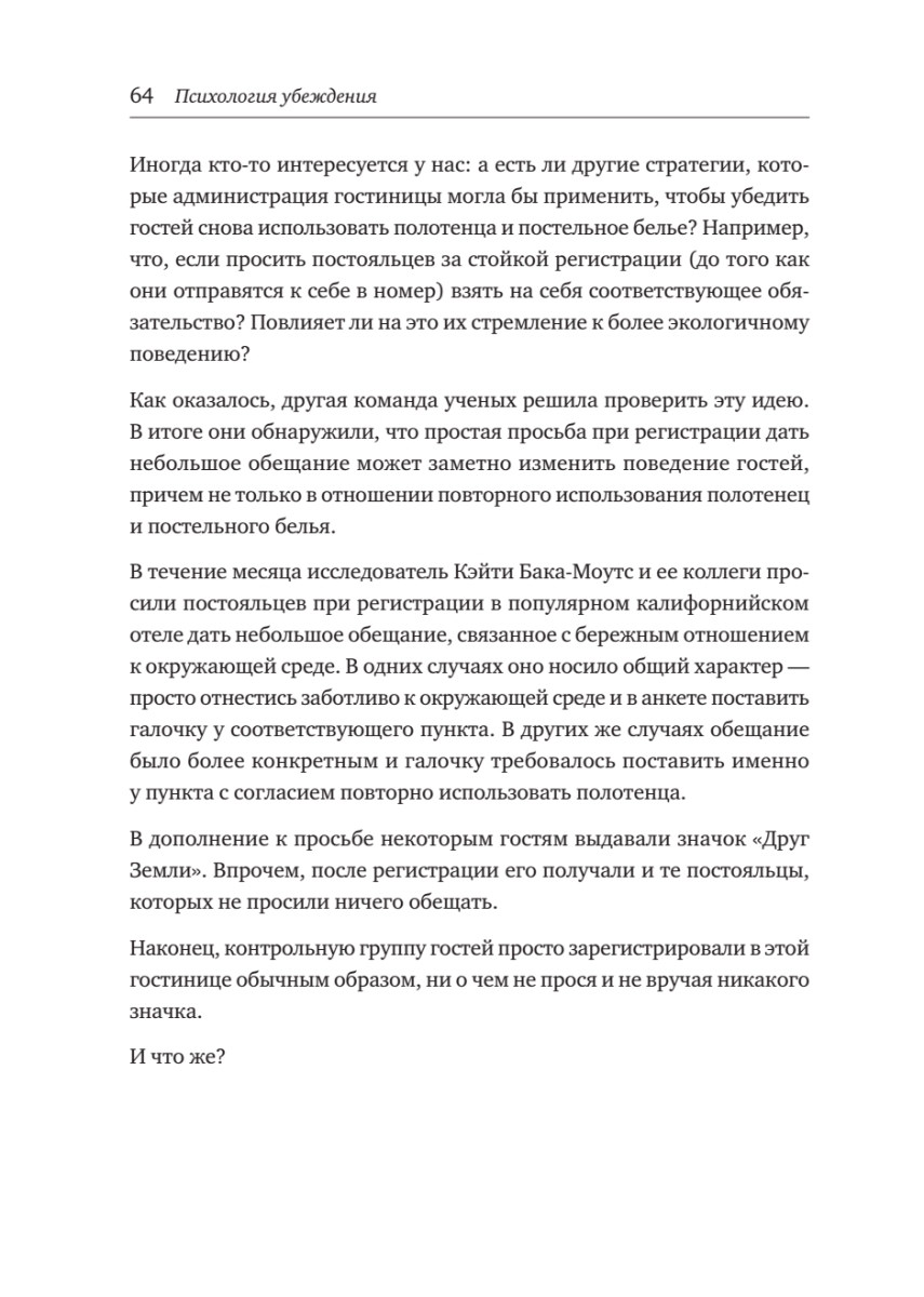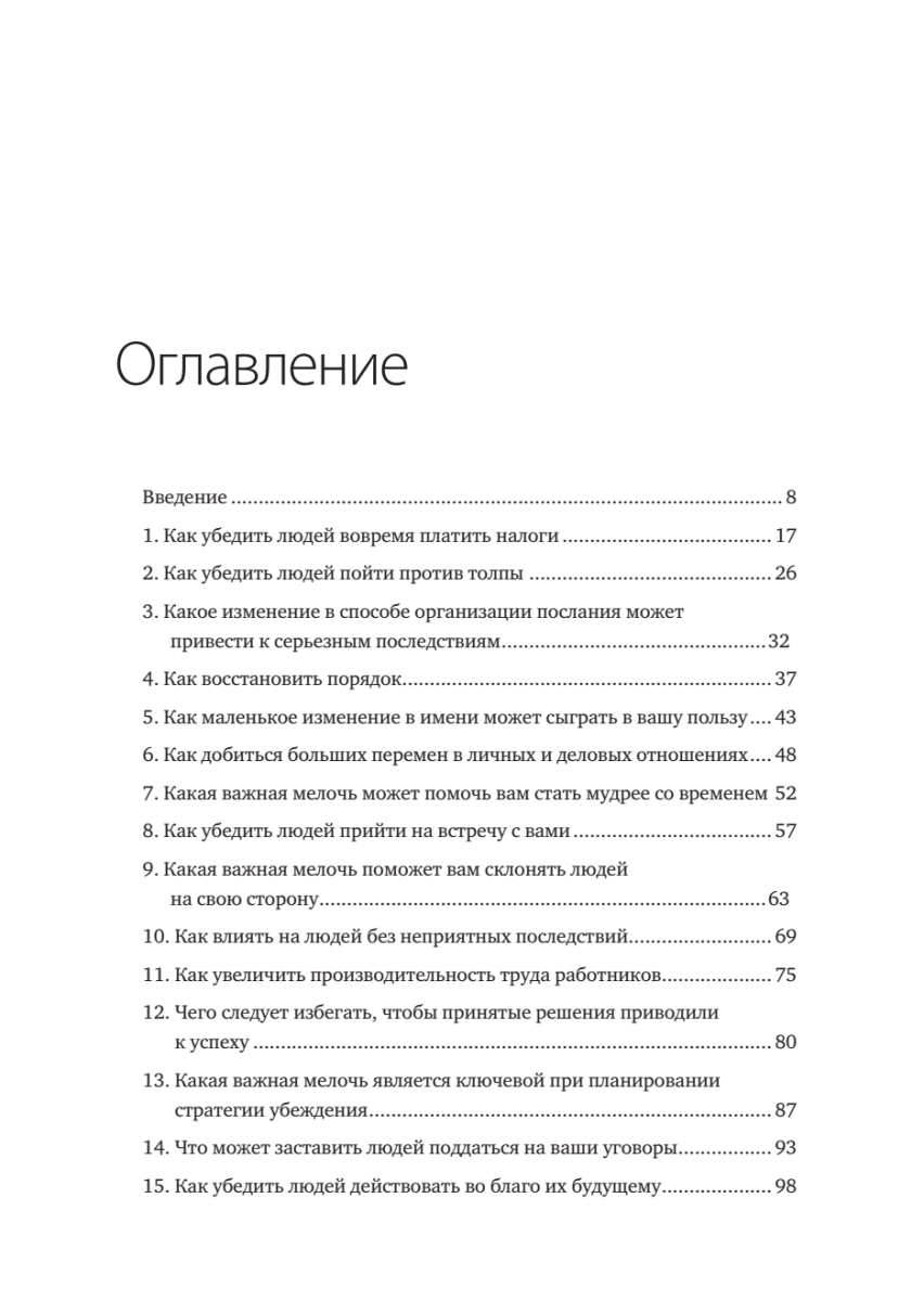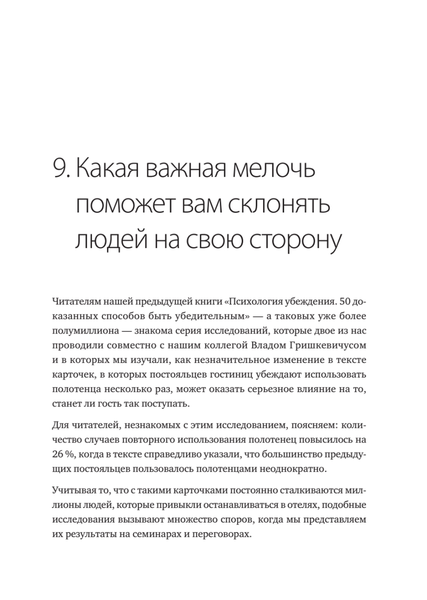 Новая книга Чалдини — мощный прорыв в сложном искусстве убеждения, более 50 удивительно простых способов влияния на людей.Не важно, кого вам надо убедить и в чем: начальника — поддержать идею, коллегу — помочь с проектом, клиента — сделать покупку, супруга — вынести мусор, ребенка — выполнить домашнее задание без капризов…Вопрос в другом. Что конкретно можно изменить в вашем подходе, чтобы убеждать намного эффективнее?Старые методы больше не работают. В эпоху кризиса доверия и избытка информации нужны новые технологии убеждения. Люди все чаще принимают решения, основываясь не на самой информации, а на контексте, в котором эта информация представлена. В современном мире именно маленькие изменения способны оказывать сильнейшее влияние. Изменения, которые вы сможете немедленно применить на практике. Изменения, благодаря которым ваша способность убеждать резко возрастет. Это и есть важные мелочи. Когда дело касается влияния и убеждения, именно они гарантируют успех!..