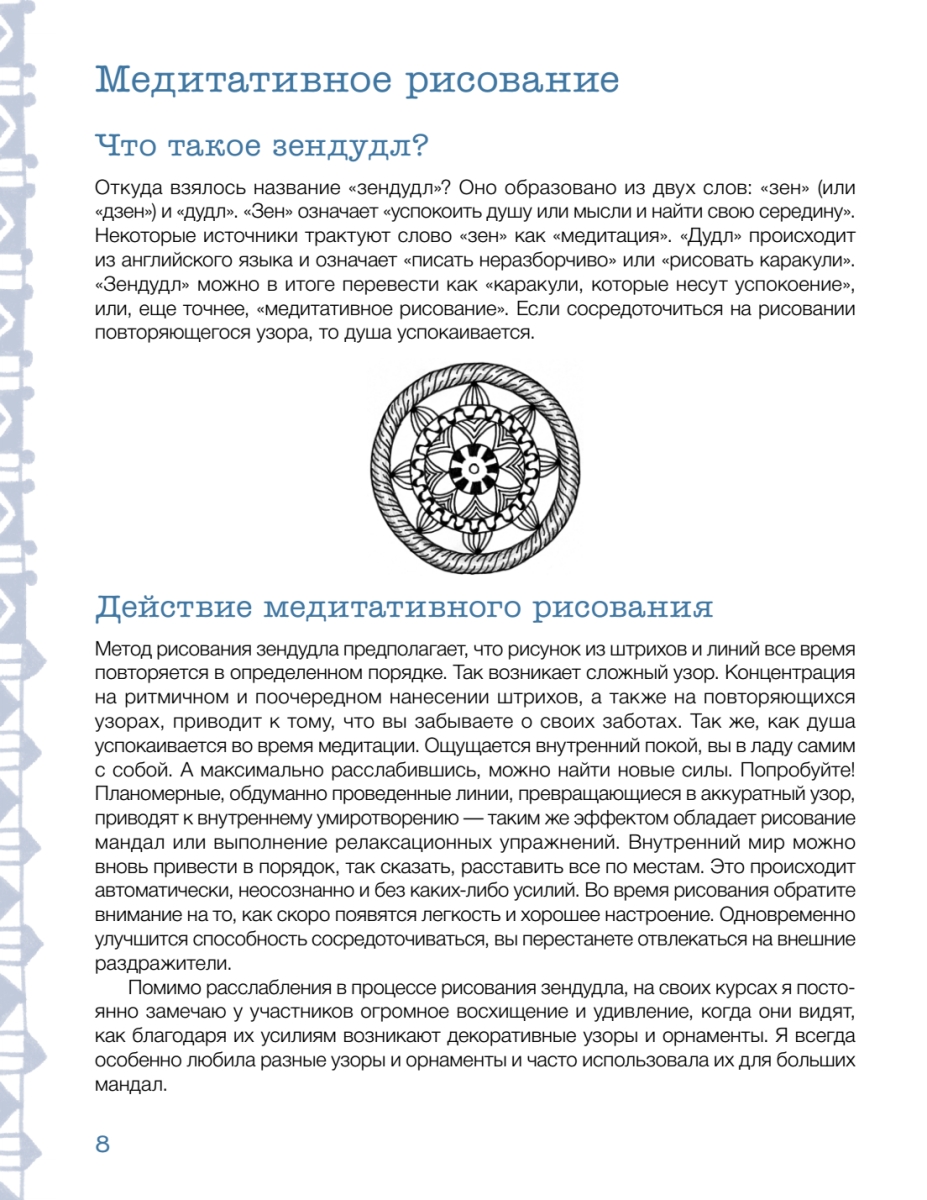 Зендудл - ставшая популярной техника рисования, с помощью которой можно не только создавать интересные и очень своеобразные произведения искусства, но и улучшать свое психологическое состояние. Все формы, линии и знаки зендудла имеют значение, как и цвета, разумеется. Используя их в своих рисунках, вы можете выразить свои переживания, погрузиться в размышления, найти гармонию с собой и даже помедитировать. Эта книга расскажет вам о возможностях зендудла, раскроет смысл основных знаков и символов и подарит вдохновение для собственного творчества.