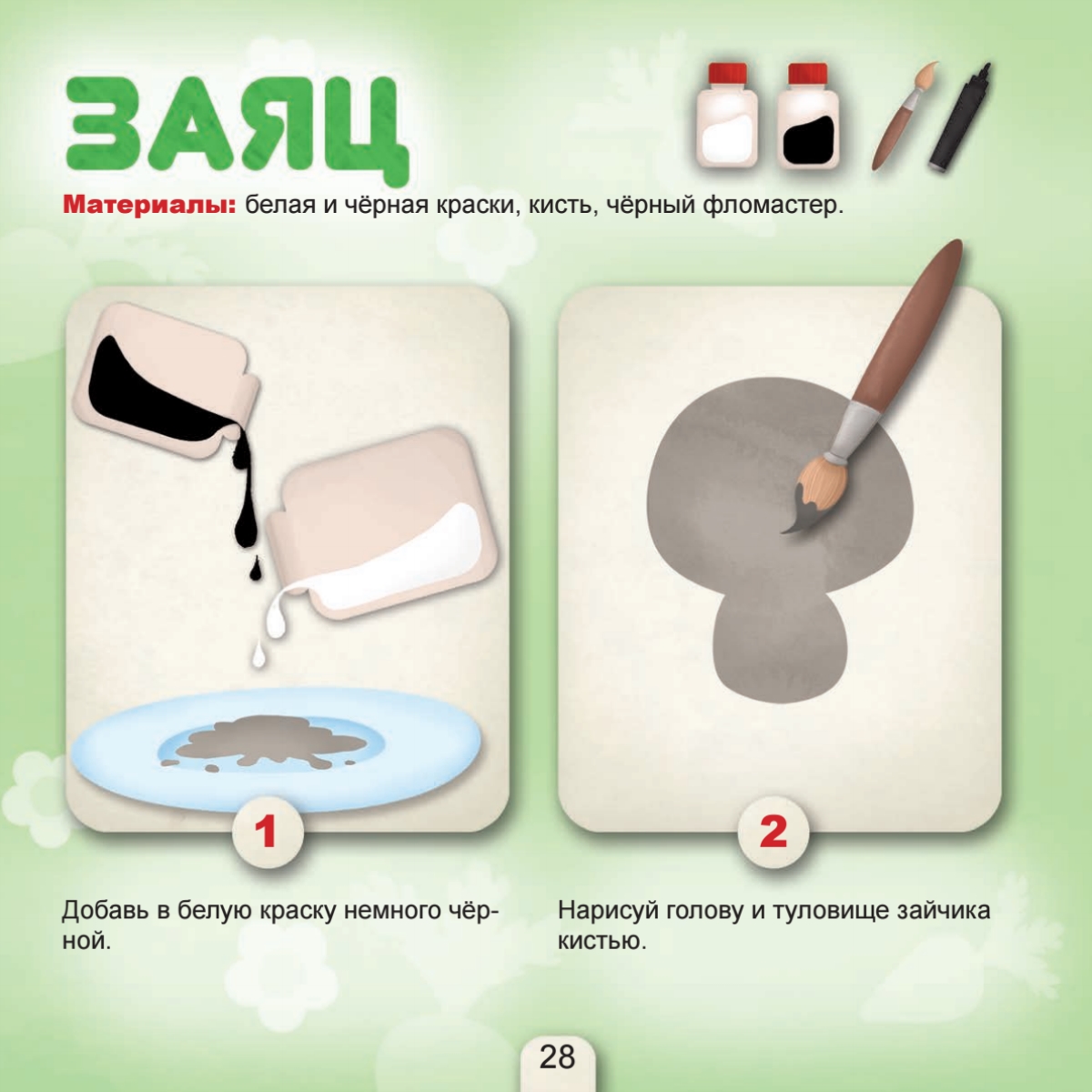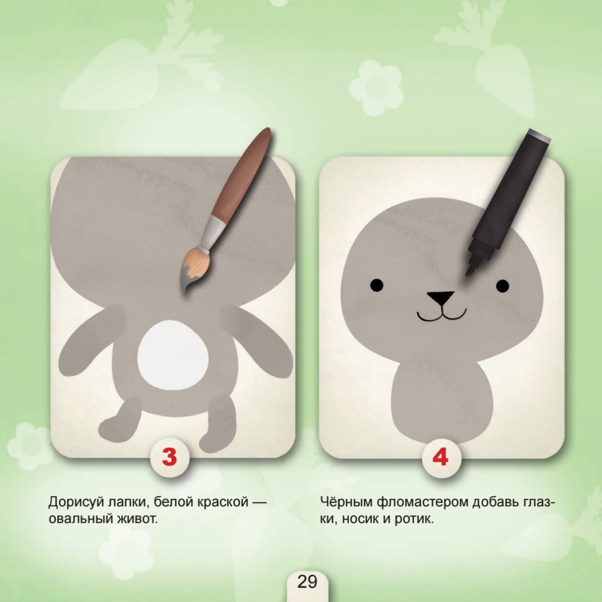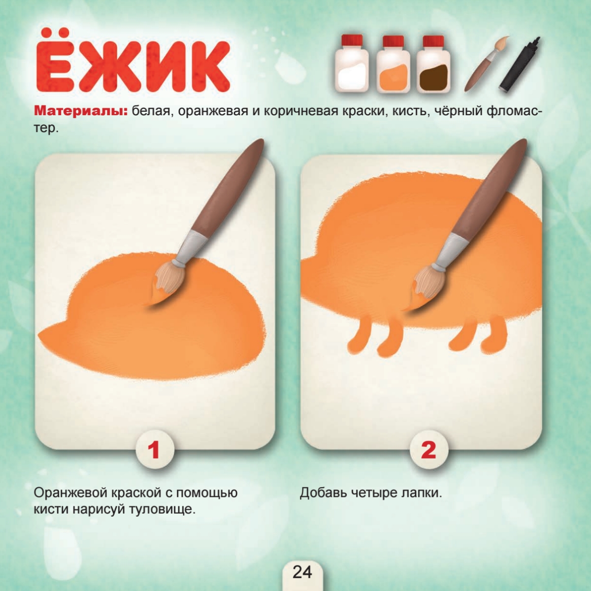 Эта книга полна авторских идей. Все, что вы найдете под рукой, вмиг станет прекрасным материалом для творчества вашего малыша. С помощью губки и ватных палочек он изобразит всех зверюшек и птиц леса. Рисуйте пальчиками и ладошками, создавайте шедевры вместе.