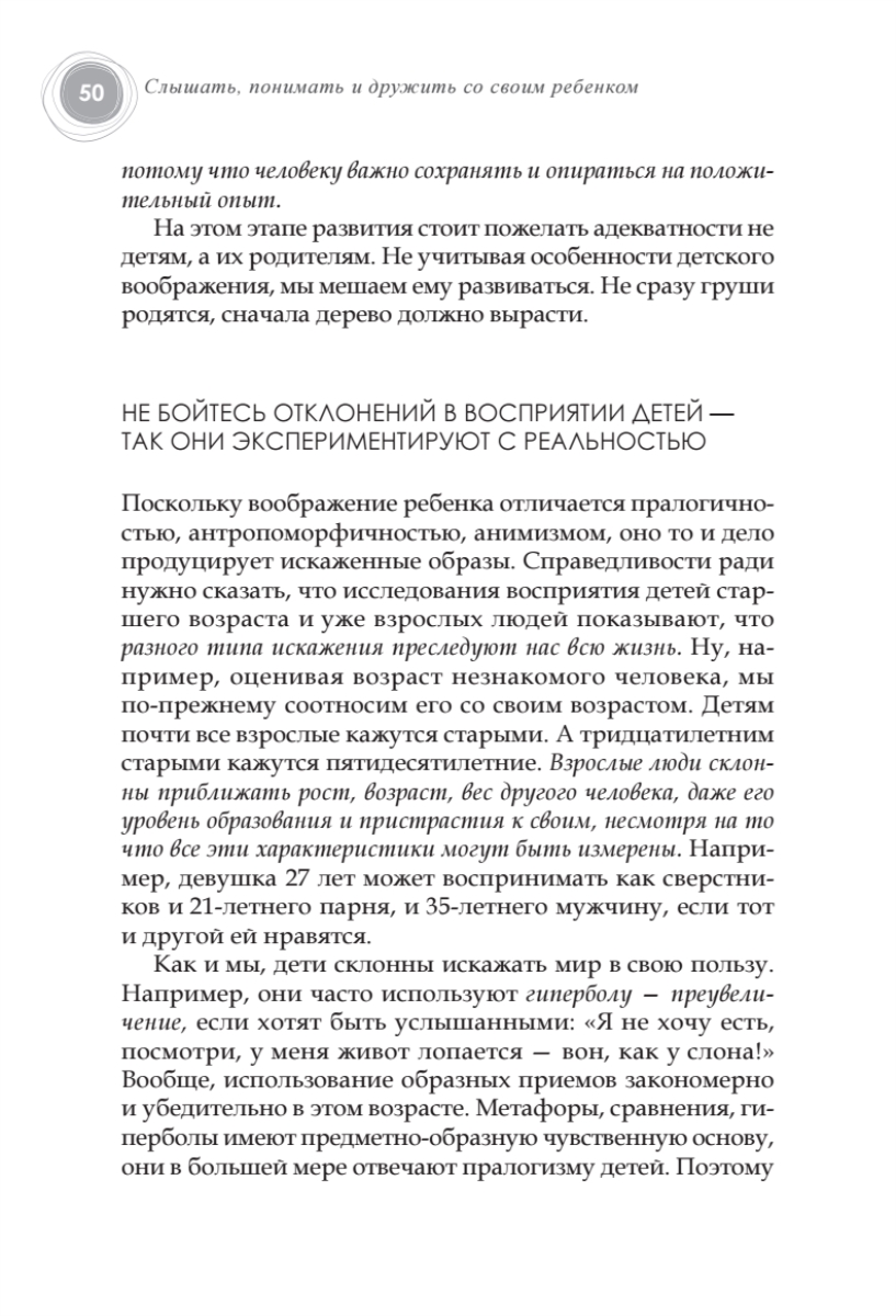Книжка Ольги Маховской «Слышать, понимать и дружить со своим ребенком» как раз для тех, кого волнует не только градус, так сказать, родительской любви, но и верное направление, в котором стоит направлять энтузиазм, чтобы сегодняшний малыш в течение следующих пары-тройки десятков лет и далее был по-настоящему счастливым человеком. Книгу можно читать и тем, кто пока не приступил к продолжению рода – будет отличный задел на будущее, а тем, кто уже обзавелся потомством, – всенепременно.