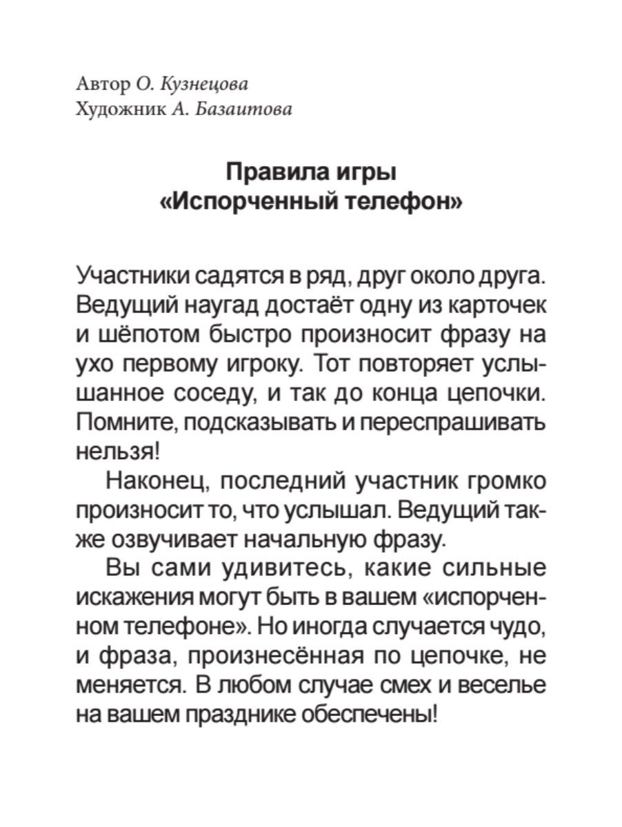 Главная > Авторы > От Й до М > Кузнецова Ольга Владимировна > Игра "Испорченный телефон" для детей и взрослых. 45 карточек