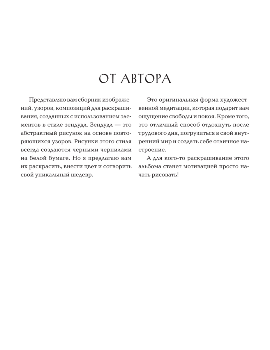 Представляем вам сборник изображений, узоров, композиций для раскрашивания.У вас есть возможность создать свой уникальный шедевр, всего лишь добавив выбранные вами цвета в предложенную композицию. Это отличный способ отдохнуть после трудового дня, погрузиться в свой внутренний мир и создать себе отличное настроение.А для кого-то раскрашивание этого альбома станет мотивацией просто начать рисовать!