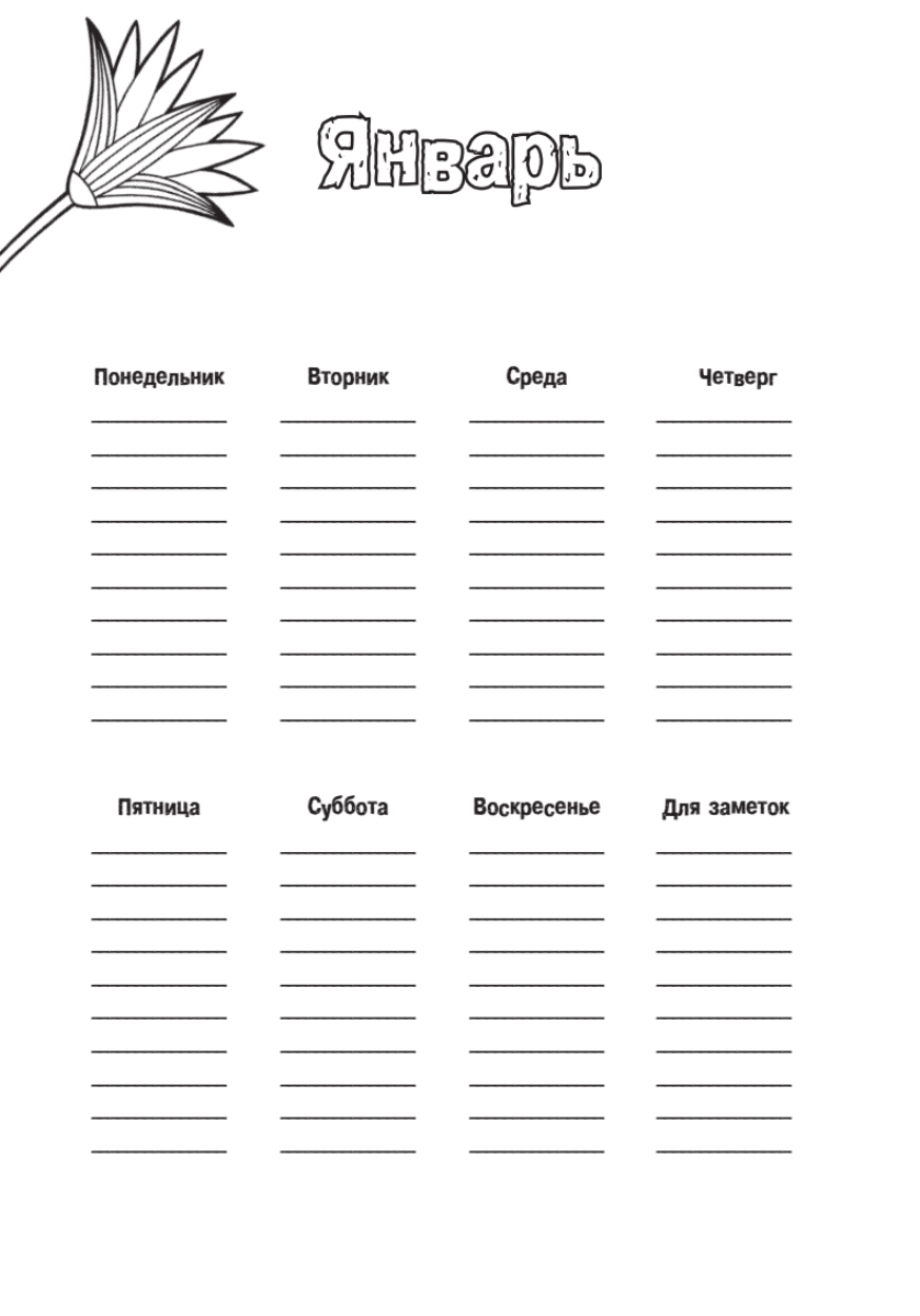 52 недели пролетят незаметно, если в вашей жизни появятся забавные котики и роскошные цветы. Уникальный еженедельник-зендудл позволяет не только планировать дела, но и рисовать. Веселые дудлы от Янины Мироновой — лучшее антистрессовое средство и источник вдохновения для всех, кто хочет сделать этот мир ярким.Возьмите карандаши и раскрасьте все дни года!