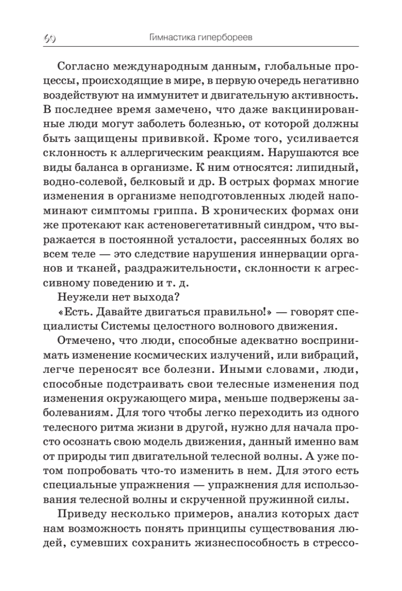 Кудряшов Николай Иванович — спортивный психолог, автор Системы целостного волнового движения, гендерных телодвижений, вибрационного боя. Преподаватель и сертификатор Института интегративной психологии, учредитель и член Международной ассоциации трансперсональной психологии.Эта книга о древней двигательной культуре гипербореев, живших когда-то на Северном полюсе, в самом его центре. Гимнастика гипербореев и по сей день представляет огромный интерес с точки зрения ее чудесных, таинственных оздоровительных свойств. Двигаться так, как двигались древние северяне, легко потому, что это походка самой матушки-природы, а в природе все прекрасно!Николай Кудряшов положил древние знания в основу разработанной им Системы целостного волнового движения. Прочитав эту книгу, вы узнаете много нового о себе и о своем организме. Вы подниметесь на новую ступень эволюции, вам откроются истинные истоки здоровья, хорошего самочувствия, правильных поступков, вы приобретете сверхъестественные способности и силы. Вибрации тела и двигательная телесная волна помогут вам сначала привести свой организм в порядок, а потом пойти дальше — к новому человеку в самом себе. Проделав комплекс простых упражнений, вы обретете чудесную способность исцелять не только самого себя, но и других. Не будем забывать древнюю истину: «Движение — это жизнь». Давайте же двигаться, только правильно! И тогда нам откроются новые, невиданные доселе горизонты.