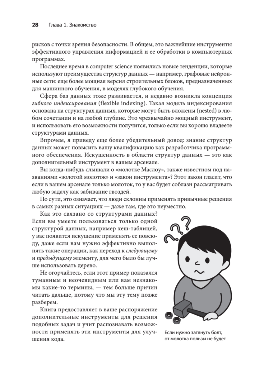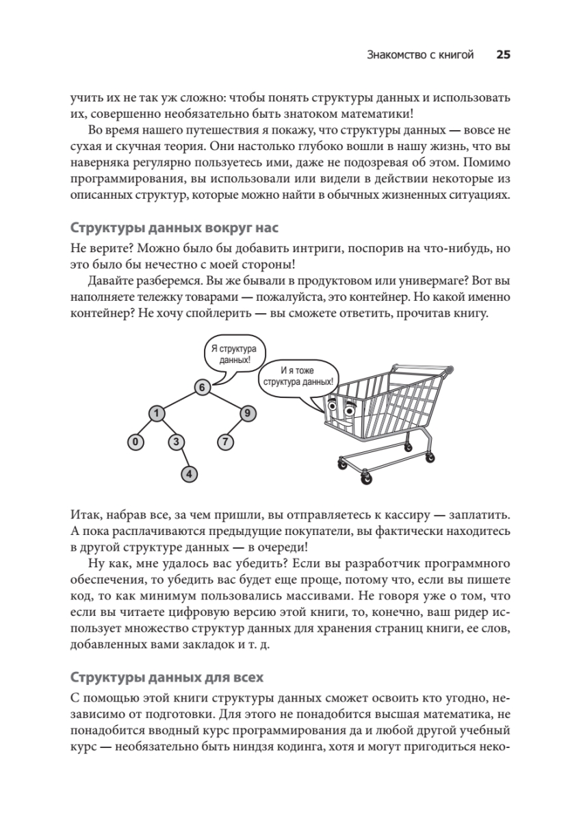 Фундаментальные знания без лишней математики. Книга объясняет структуры данных и алгоритмы на примерах и аналогиях, без углубления в сложные математические доказательства. Это делает ее доступной даже для начинающих разработчиков.