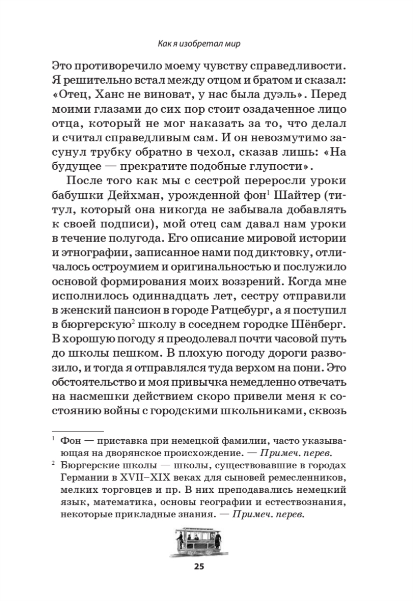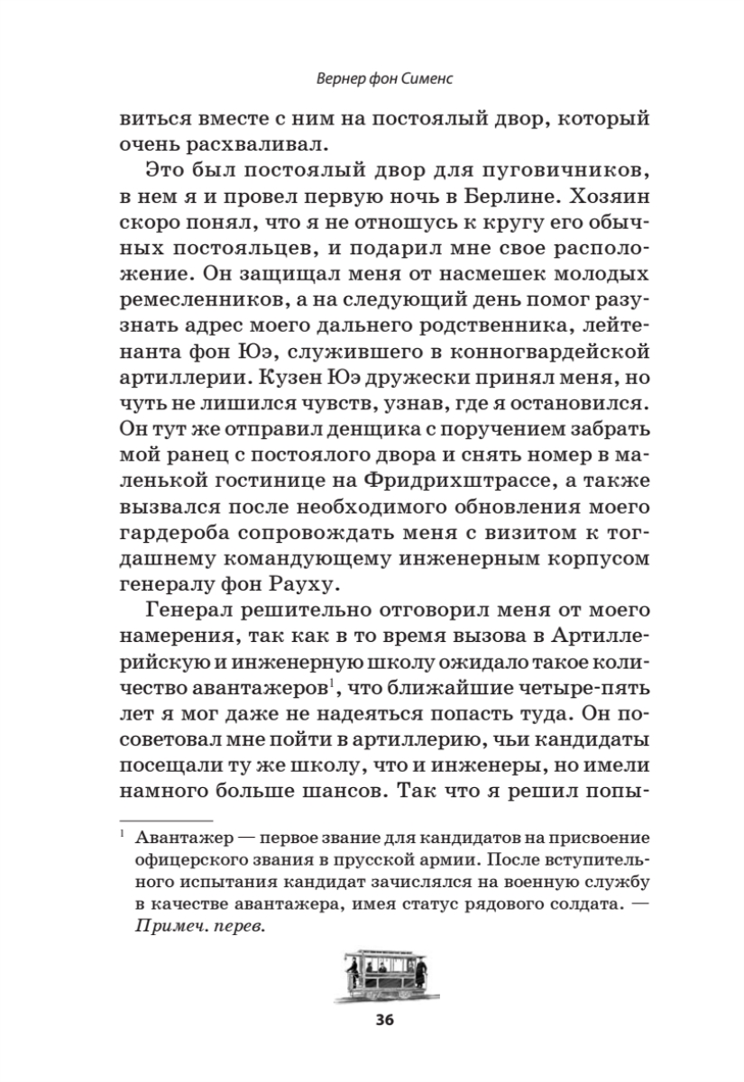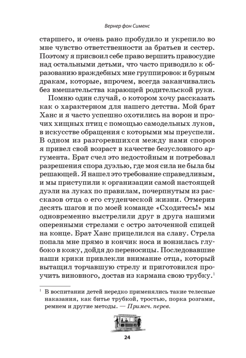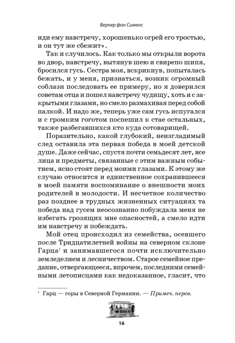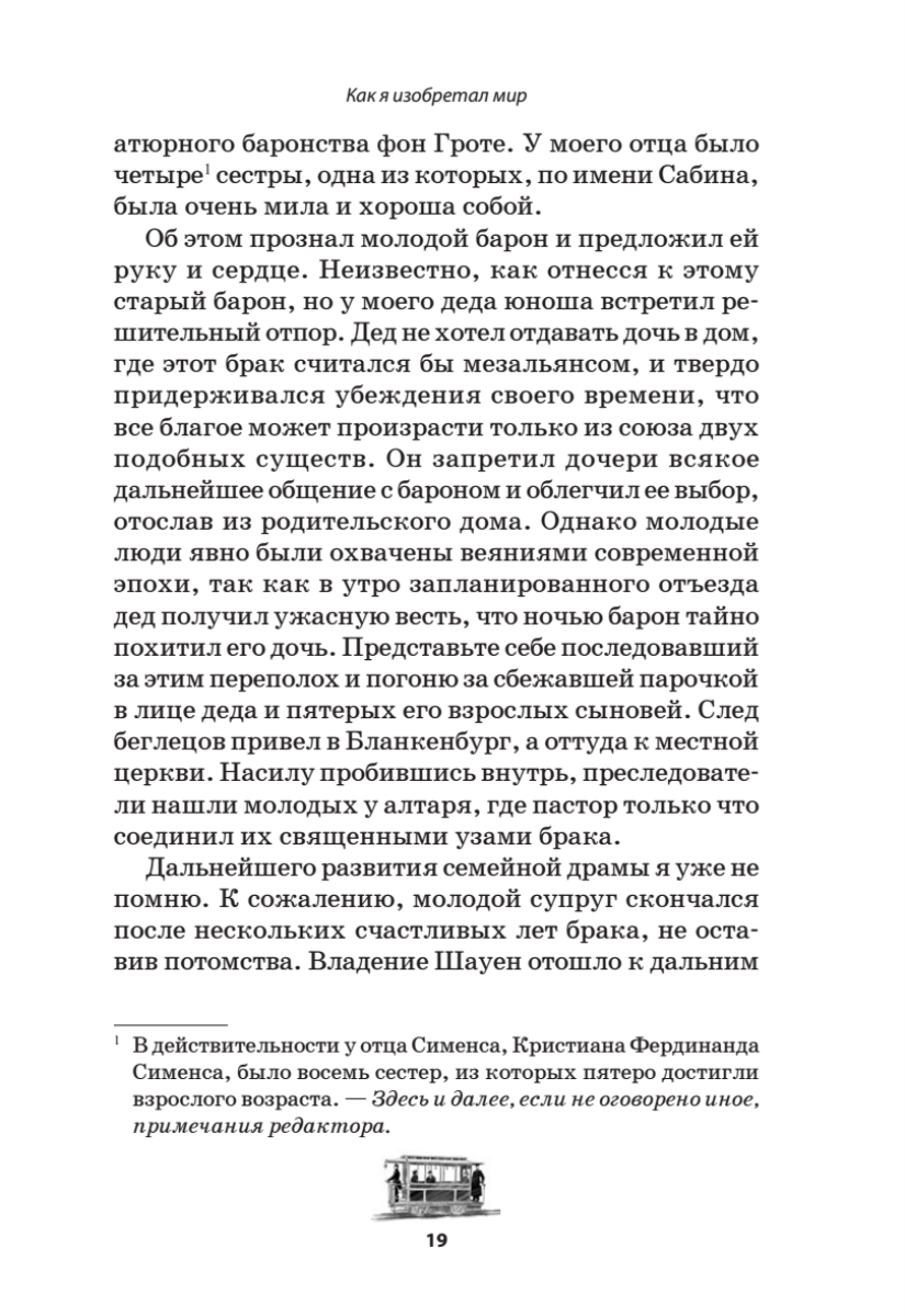 Воспоминания Вернера фон Сименса (1816 - 1892) - драгоценная находка для исследователей научно-технической истории мира, инженеров, конструкторов, изобретателей, студентов и преподавателей технических учебных заведений, рационализаторов, предпринимателей, руководителей всех рангов. Книга подарит немало приятных часов и тем, кто увлекается изучением биографий крупномасштабных личностей. Читая эти мемуары, можно услышать голос представителя великой эпохи, соединившей фантастику и реальность. Особый интерес к личности Вернера фон Сименса, изобретателя электролокомотива, трамвая, троллейбуса, электролифта, прокладчика трансконтинентальных телеграфных линий, вызывает тот факт, что именно он протянул между крупнейшими городами России провода первого электрического телеграфа. Взгляд на николаевскую Россию иностранного очевидца - необычайно любопытный и ценный материал - в полной мере запечатлен в этом издании. Сознание современного человека прочно связало фамилию Сименс с названием известной германской компании. Однако прежде чем мир увидел и запомнил логотип SIMENS, состоялась бурная, насыщенная взлетами и падениями жизнь, которая и отразилась на страницах этой книги.