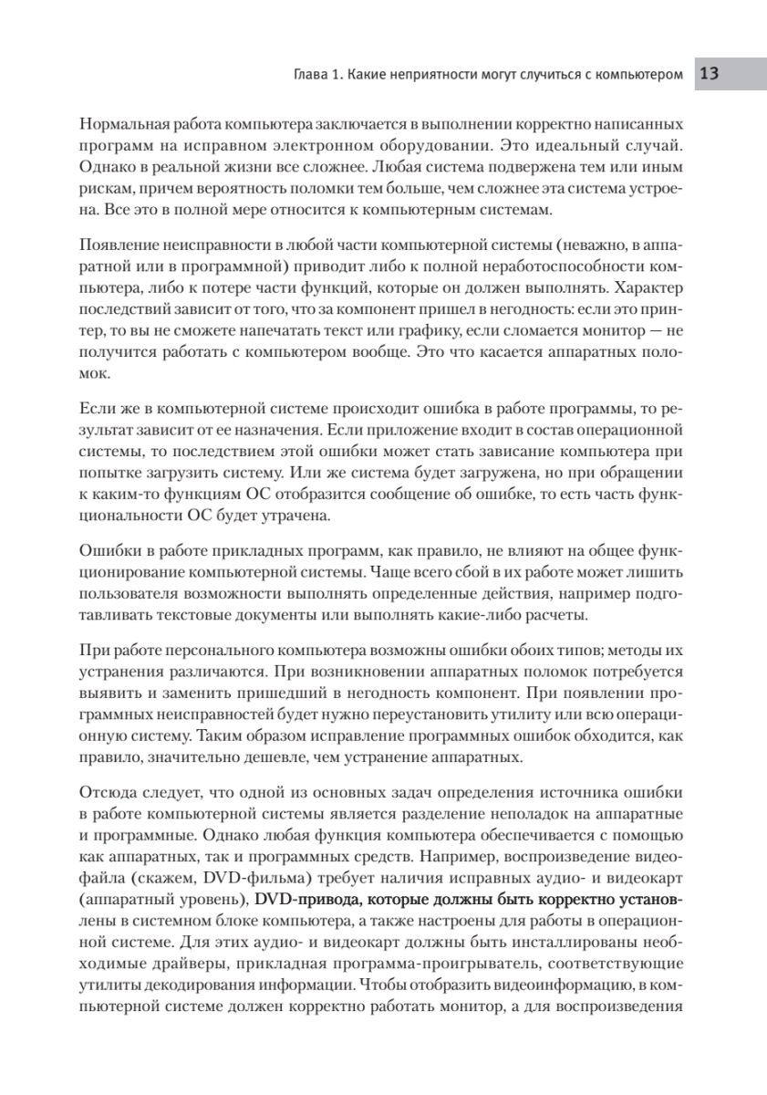 Не загружается Windows, и вы видите лишь черный экран? Или же система загружается, но потом экран становится синим и на нем появляются непонятные символы? На вашем компьютере вирусы и вы не можете от них избавиться? Вы случайно удалили важную информацию и не можете ее восстановить? Не стоит паниковать и спешить вызывать мастера! Со многими компьютерными сбоями можно справиться самостоятельно! Как - вы узнаете из этой книги. В ней предельно просто рассказывается о наиболее частых поломках ПК, сбоях операционной системы и программного обеспечения, а также способах их устранения. Отдельно обсуждается способы восстановления утраченной информации и защиты компьютера от вирусов. Узнайте, как защитить ПК на 100%!
