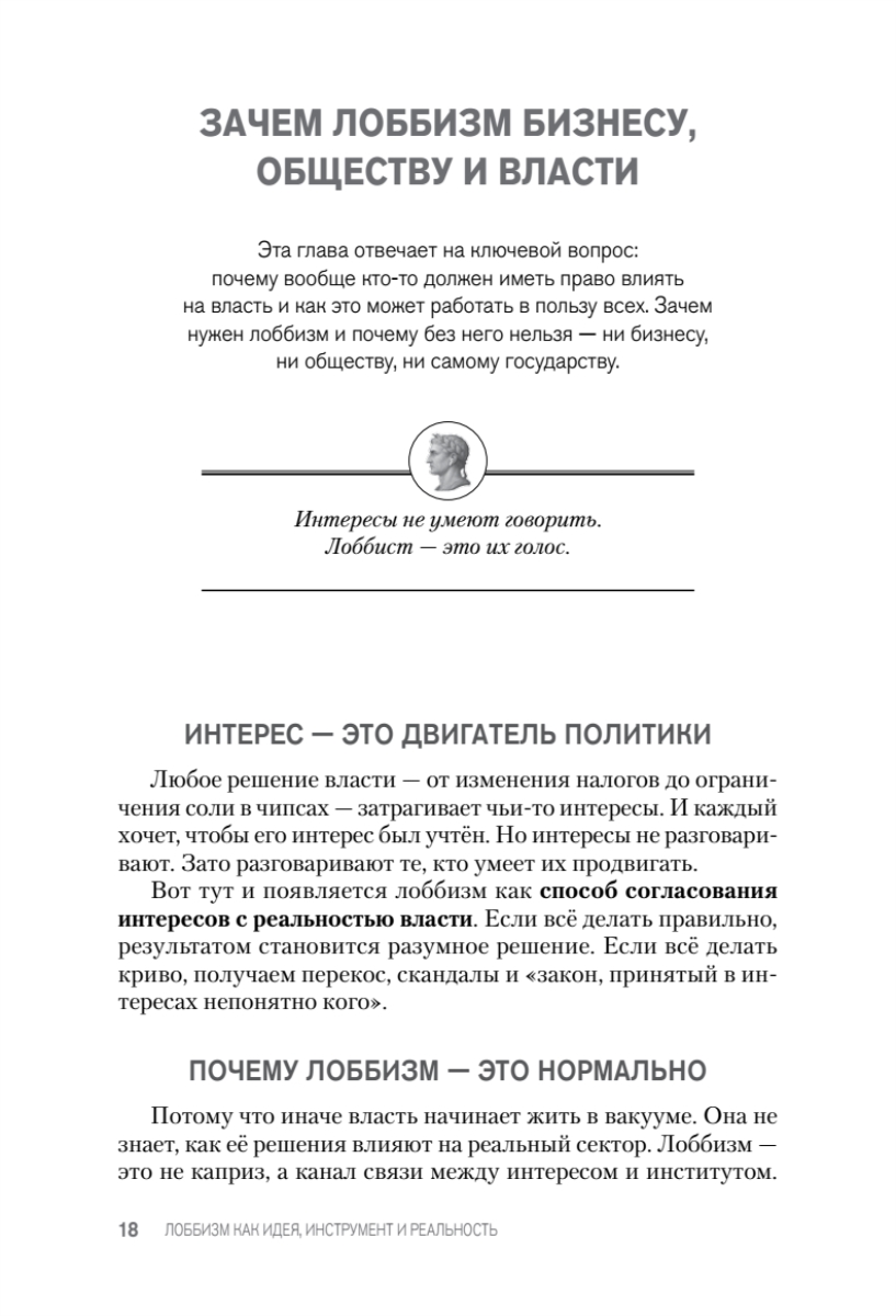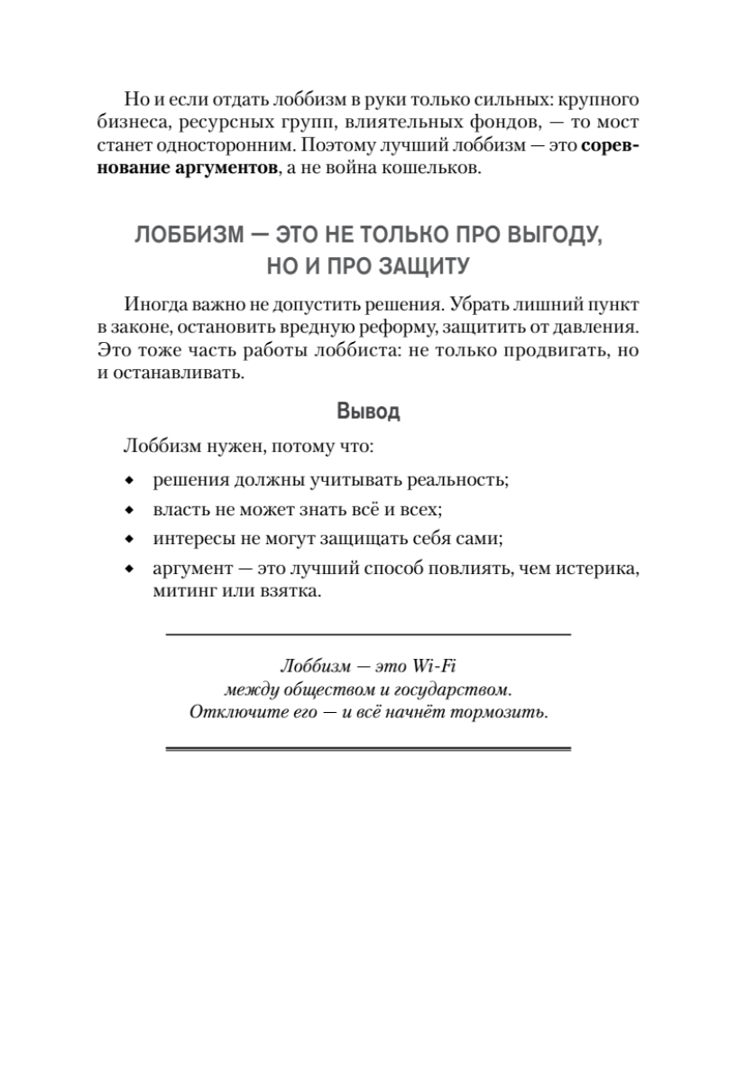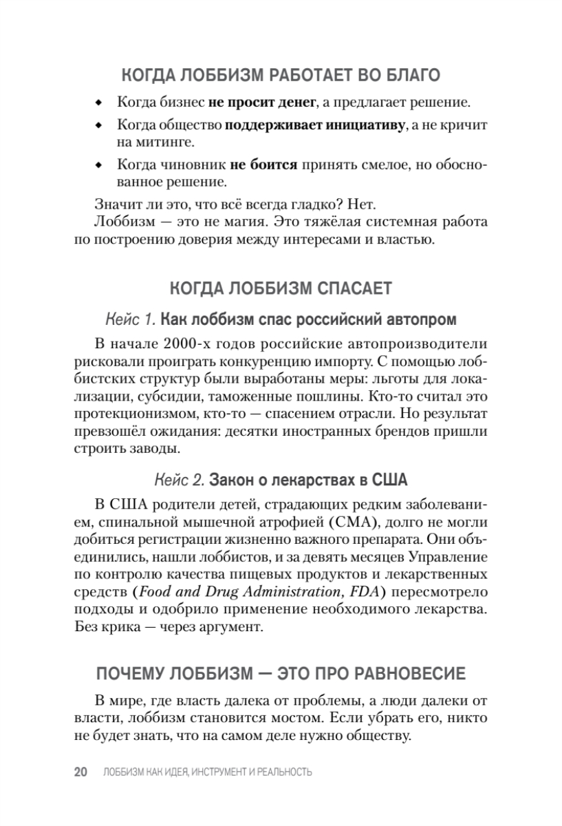 3. Книга разрушает стереотипы и показывает, что лоббизм — это инструмент развития и баланса интересов, без которого невозможна современная демократия.