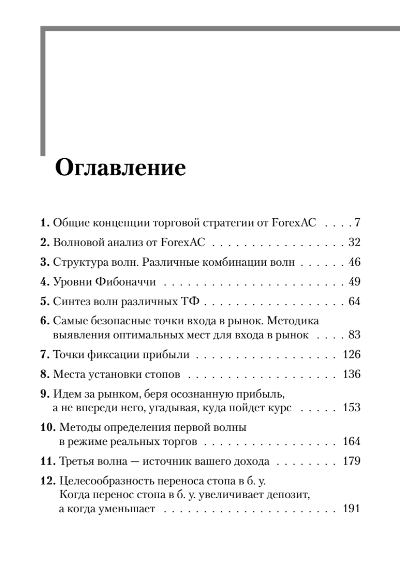 Перед вами первая книга по волновому анализу рынков, которая может применяться в реальной торговле. В ней четко показаны основные приемы технического анализа, изучив которые вы сможете понять логику движения валютных пар и всегда находить максимально выгодные места для заключения сделок. Данная книга поможет разобраться во всех хитросплетениях, которые формируются на валютном рынке. В ней раскрыты секреты правильной разметки рыночных движений, которая никогда вас не подведет, показаны семь основных точек входа в рынок, даны методы фиксации прибыли и установки защитных ордеров, показана уникальная методика торговли во время тренда и флэта, представлена авторская методика применения фибо-сеток для точного определения разворотов рынка.Эта книга перевернет ваше представление об анализе рынка на 180 градусов. Прочитав ее, вы научитесь самому главному: не стараться угадать, куда пойдет рынок, а идти за ним, беря осознанную прибыль.