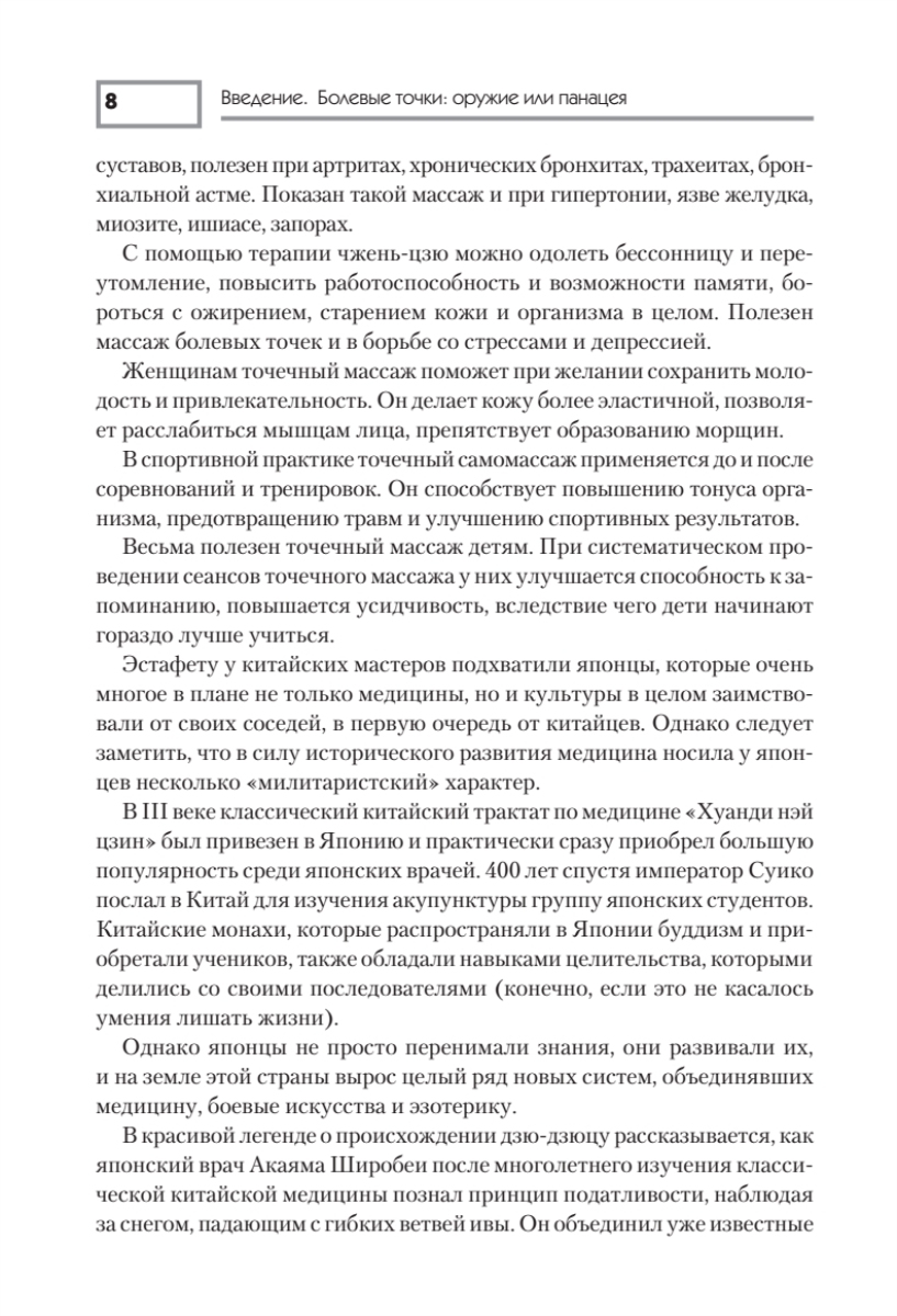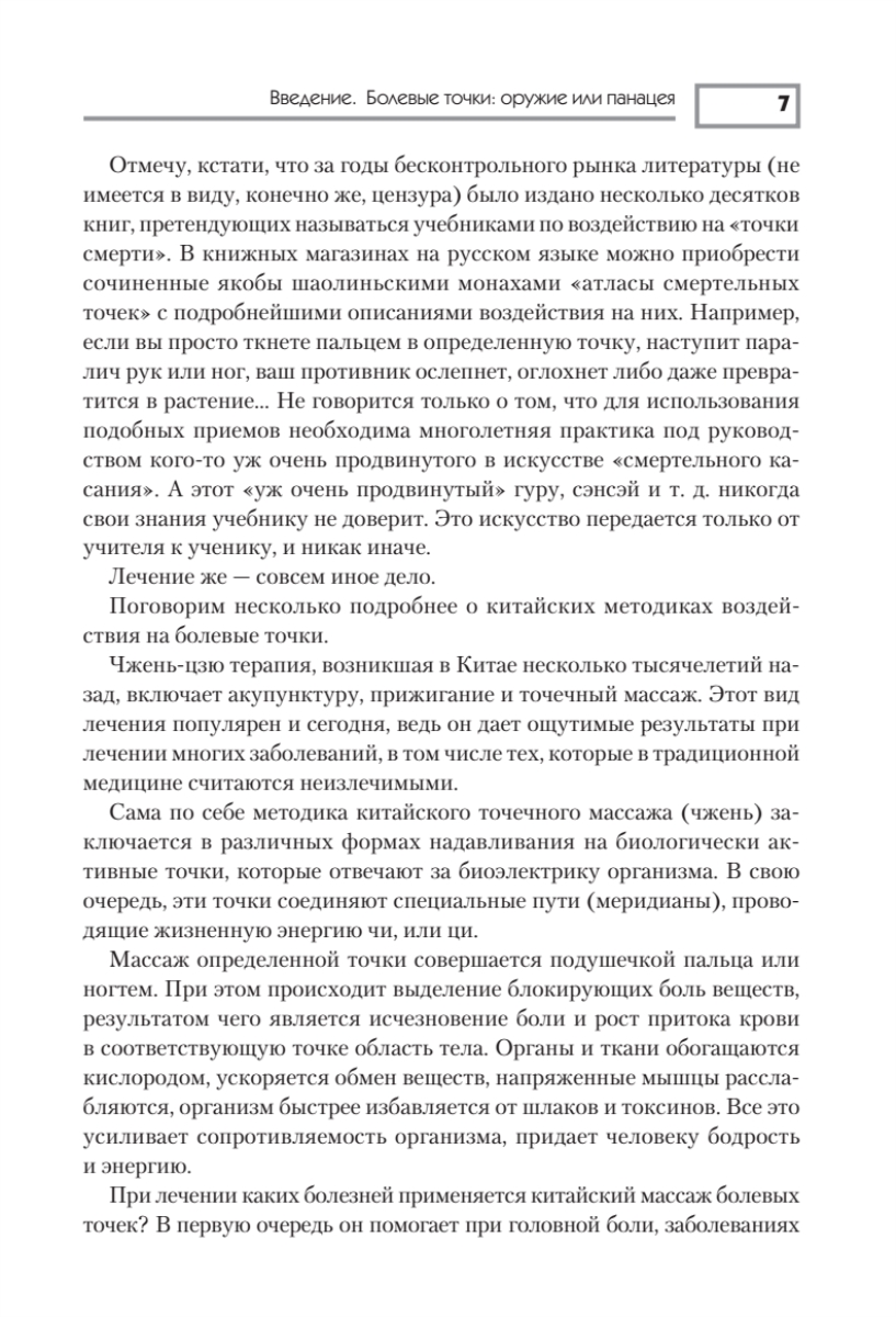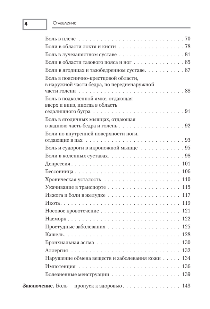 Головная и зубная боль, простуда и аллергия, бессонница и переутомление, боль в суставах… Вернуть вас и ваших близких к полноценной жизни поможет массаж болевых точек. Он не просто дает временное послабление — он устраняет причину боли, снимает спазм, возобновляет нормальное кровоснабжение организма.Выполняйте массажные упражнения не только в случаях, когда боль уже возникла, но и для профилактики, и вы навсегда забудете о своем недуге.