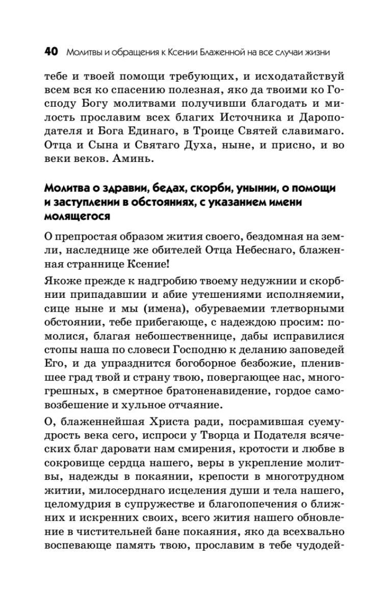 Ксения Блаженная — не просто покровительница Санкт-Петербурга, но всероссийская заступница всех грешных. При здравом уме она казалась безумной, умоляя Создателя о помиловании скоропостижно скончавшегося супруга. Отказавшись не только от благ мира, но и от самой себя, она пронесла этот крест со смирением и кротостью. Истории о ней уже два века передаются из уст в уста.Часовня Ксении Блаженной на Смоленском кладбище — место паломничества тех, кто ищет у святой помощи в самых разных жизненных обстоятельствах. Люди обращаются к ней со своими бедами и горестями, они верят, что Ксения всегда поможет, оградит от несчастья.В книге собраны молитвы к Ксении Блаженной и другим святым о здоровье, замужестве, счастье в браке, детях, об избавлении от страстей и разных напастей. Обратитесь со словами, полными веры, и вы будете услышаны!